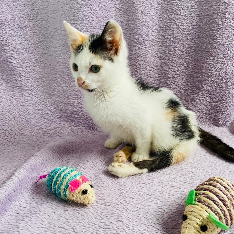 Der kleine Sonnenschein spielt gerne mit der Katzenangel, der Knisterkugel oder auch das Toben im Katzenhaus aus Karton bereitet große Freude.