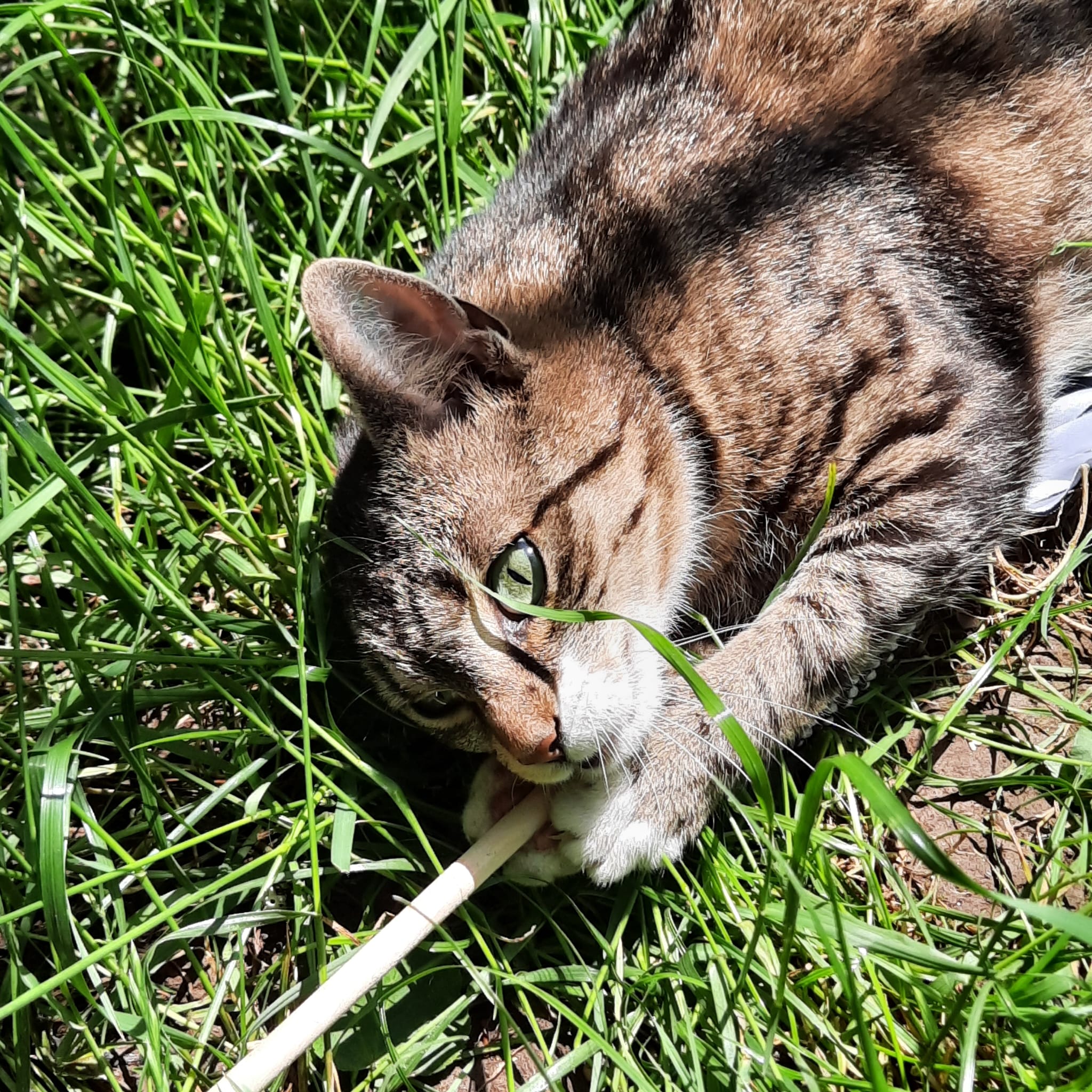 Dandelion ist zwar noch etwas vorsichtig, aber wenn man sich ihr ruhig nähert, ist sie sehr empfänglich für Streicheleinheiten. Sie  mag es, wenn man sie mit der Katzenangel zum Spielen animiert.