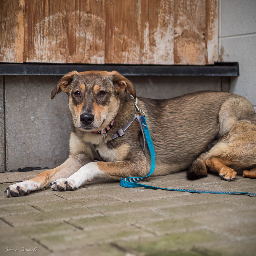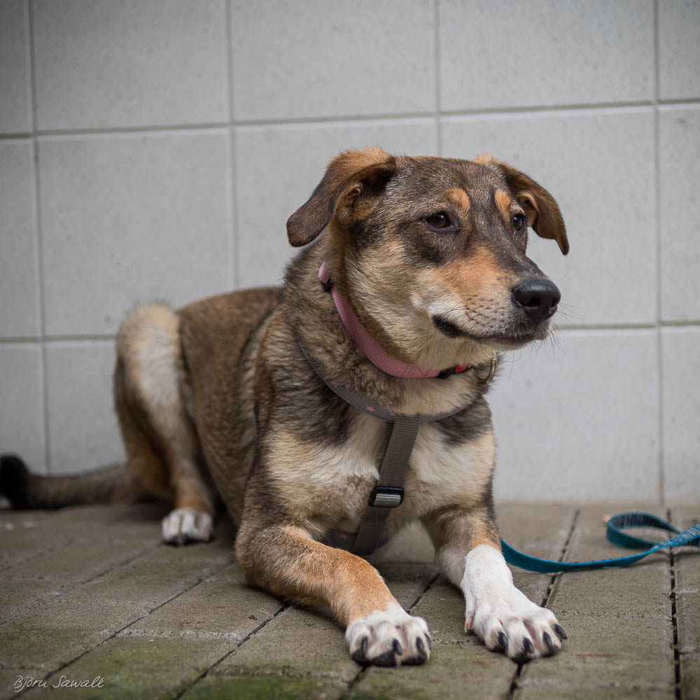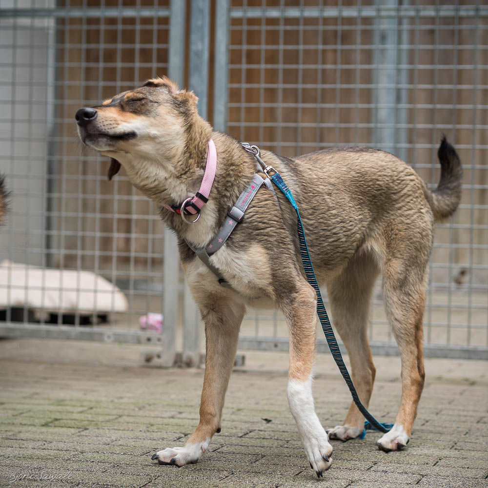 Die ursprünglich aus Rumänien stammende Hündin zeigte sich die ersten Tage sehr unsicher, schüchtern und in sich gekehrt. Nur ihr Hundekumpel Jako gab ihr Halt. Sie findet den Kontakt zu uns Pflegern noch nicht so toll aber verfällt auch nicht in Panik wenn wir Kontakt zu ihr aufnehmen. An der Leine laufen muss noch mit ihr geübt werden. Die schüchterne und etwas ängstliche Hündin sucht ein ruhiges Zuhause mit Hundeerfahrung. Ein schon vorhandener Ersthund wird ihr sicherlich vieles in ihrem neuen Leben erleichtern.
