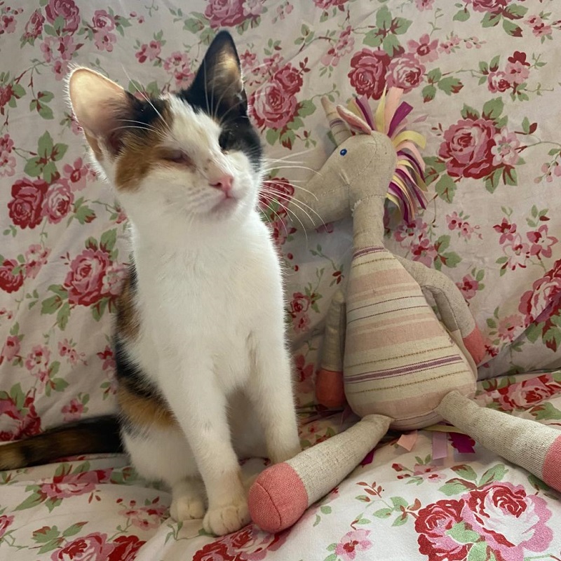 Das wunderschöne dreifarige Kätzchen mit dem Namen Clara Glück lebt es uns gemeinsam mit ihrem Katzenfreund names Klee vor. Sie zeigen, dass die Katzenwelt ohne Augenlicht nicht trist und grau sein muss, sondern mutig und optimistisch.