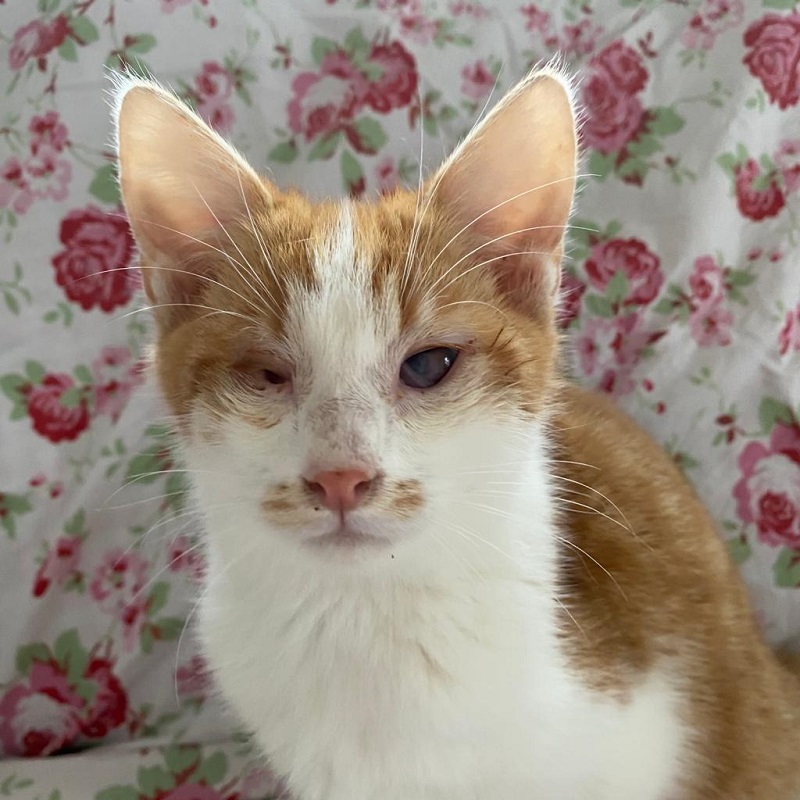 Beide Katzen teilen ein Schicksal, denn auch dieser wunderschöne Jungkater hat keine vollständige Sehfähigkeit. Ein Auge ist in kleinen Ansätzen zu erkennen, doch noch ist unklar, ob und wie wie er jemals sehen wird. Das andere Auge scheint nicht vorhanden zu sein. Katerchen Klee kommt mit dieser Einschränkung ebenfalls wunderbar zurecht und liebt es, wenn er mit Ruhe und Zeit gestreichelt wird. Schnurrend genießt er es im weichen Körbchen zu liegen - wie man im Video schön sehen kann.