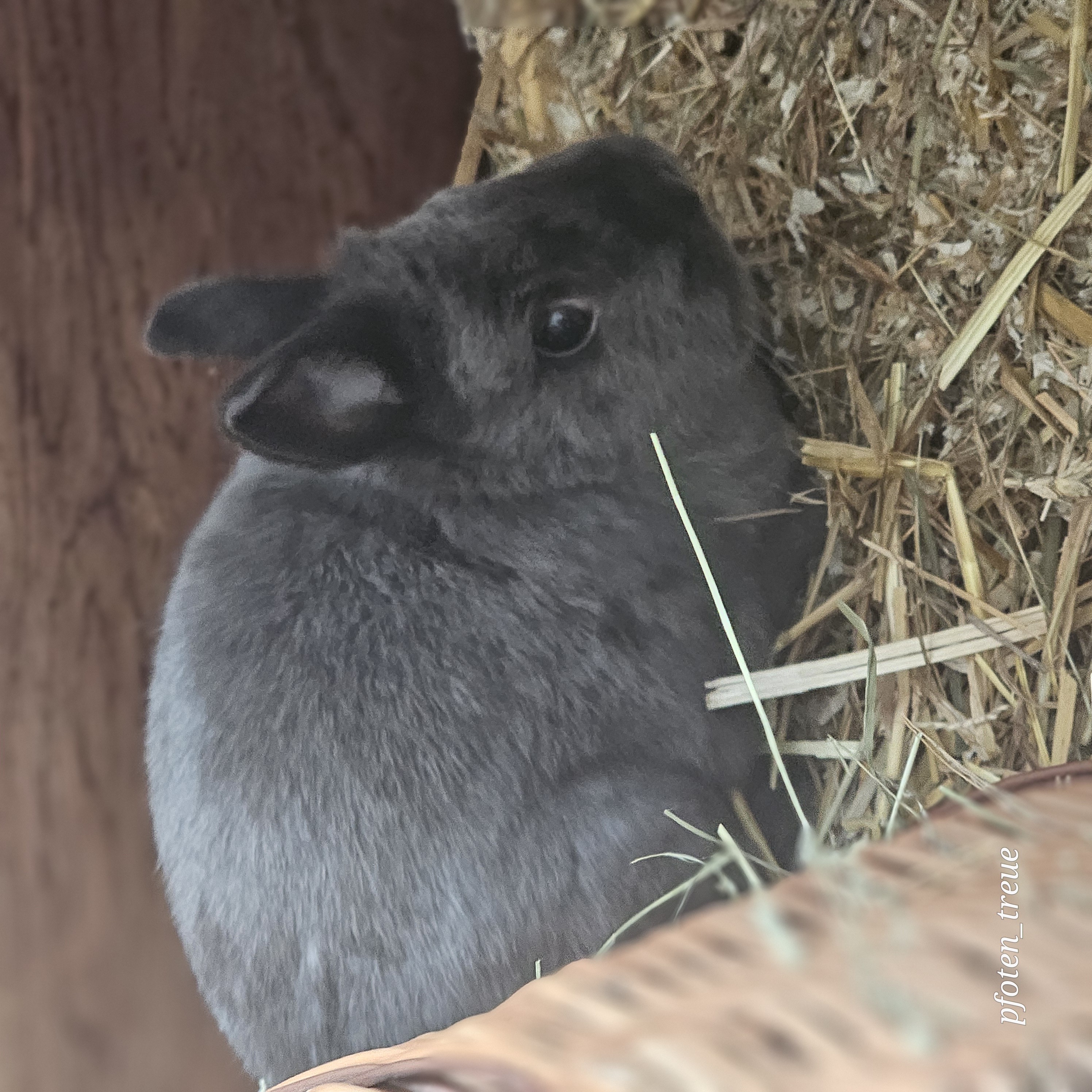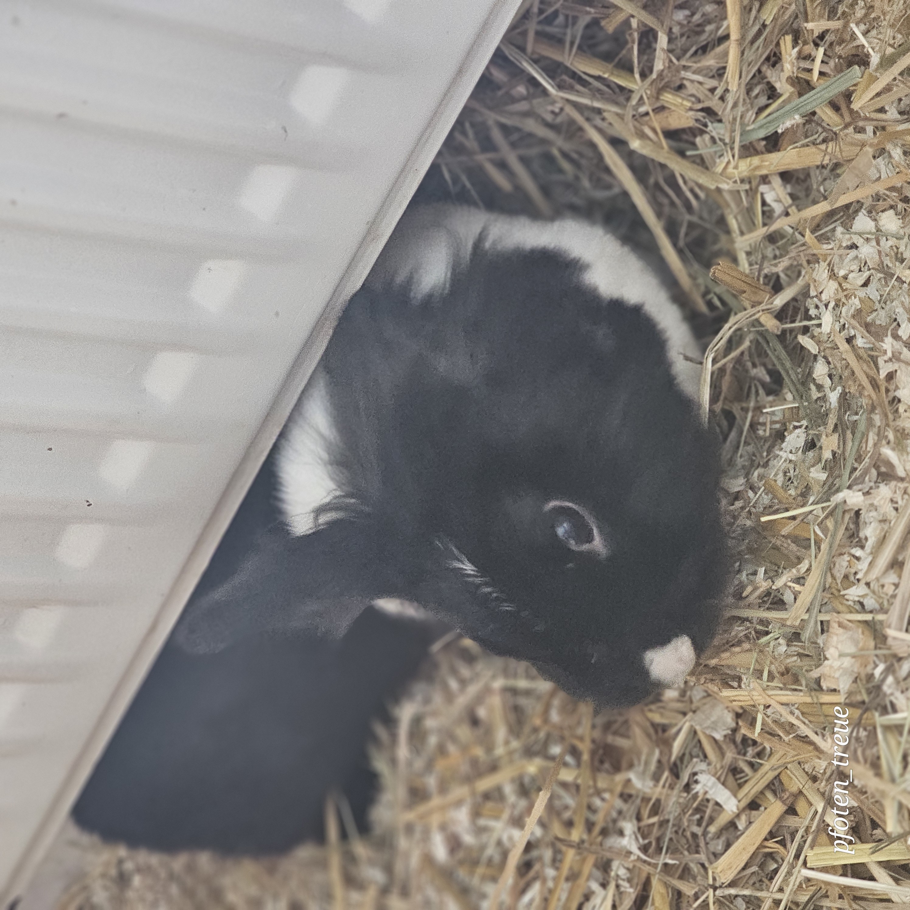 Flöckchen, der kastrierte Löwenkopf (schwarz/weiß), und Sunny, die nicht kastrierte silberne Häsin, beide um 2019 geboren, suchen ein neues Zuhause. Die beiden sind seit dem 18.12.2023 im Tierheim Alsfeld. Sie zeigen sich noch ängstlich, verstecken sich oft, zeigen jedoch keinerlei aggressives Verhalten. Gewohnt sind sie an die Innenhaltung, im neues Zuhause benötigen sie mindestens 6m² Grundfläche und täglich sehr viel Beschäftigung und Abwechslung. Ihre Ernährung umfasst Trockenfutter, Heu und Frischfutter. Als Fluchttiere brauchen sie einfühlsame Pflege und Geduld.