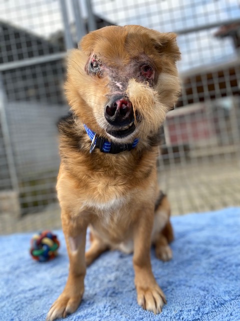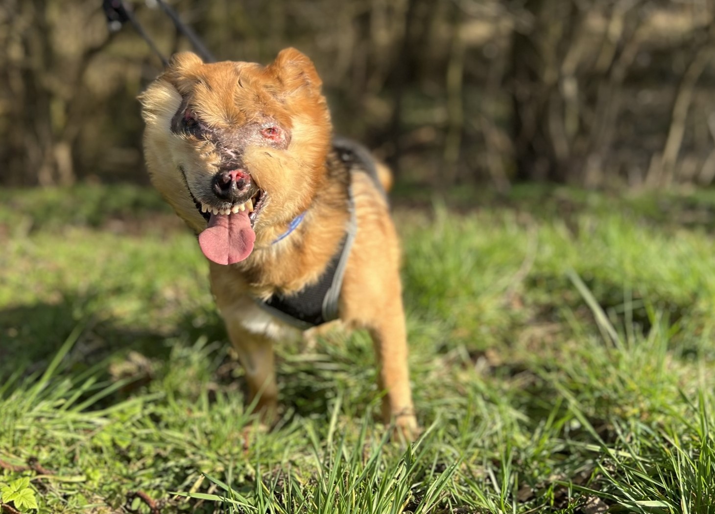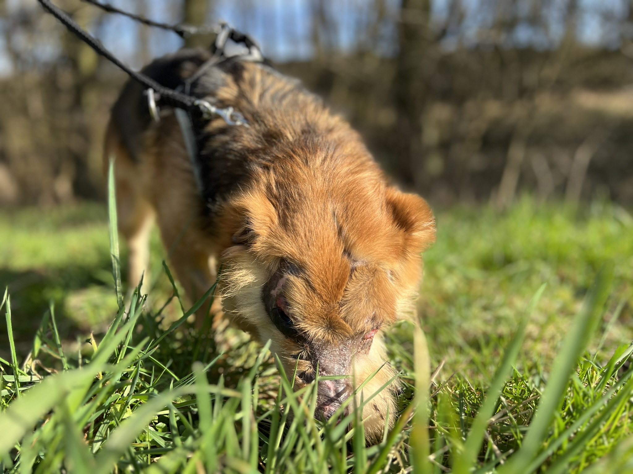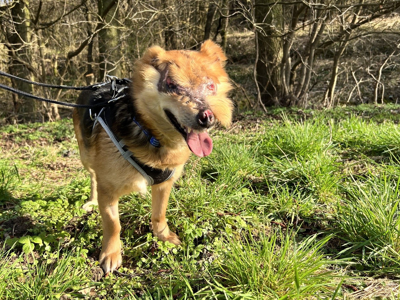 Aber August liebt sein Leben und freut sich so sehr über Zuwendung und Streicheleinheiten. Er hat bei uns auch schon eine Hundefreundin und geht prima Spazieren.