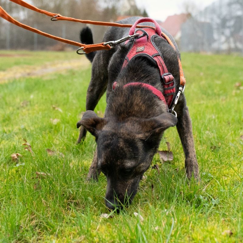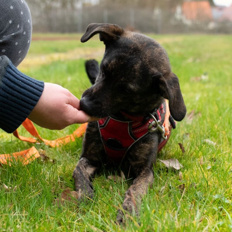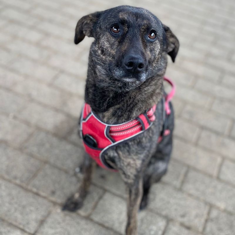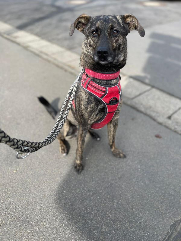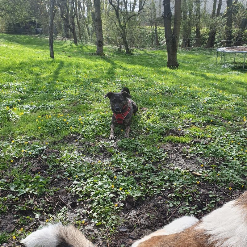 Über unsere Mitarbeiter freut Heidi sich schon, sie geht mit in die Hundeschule, hat Spaß am Spazierengehen und ist gerne bei ihrem Menschen mit dabei.