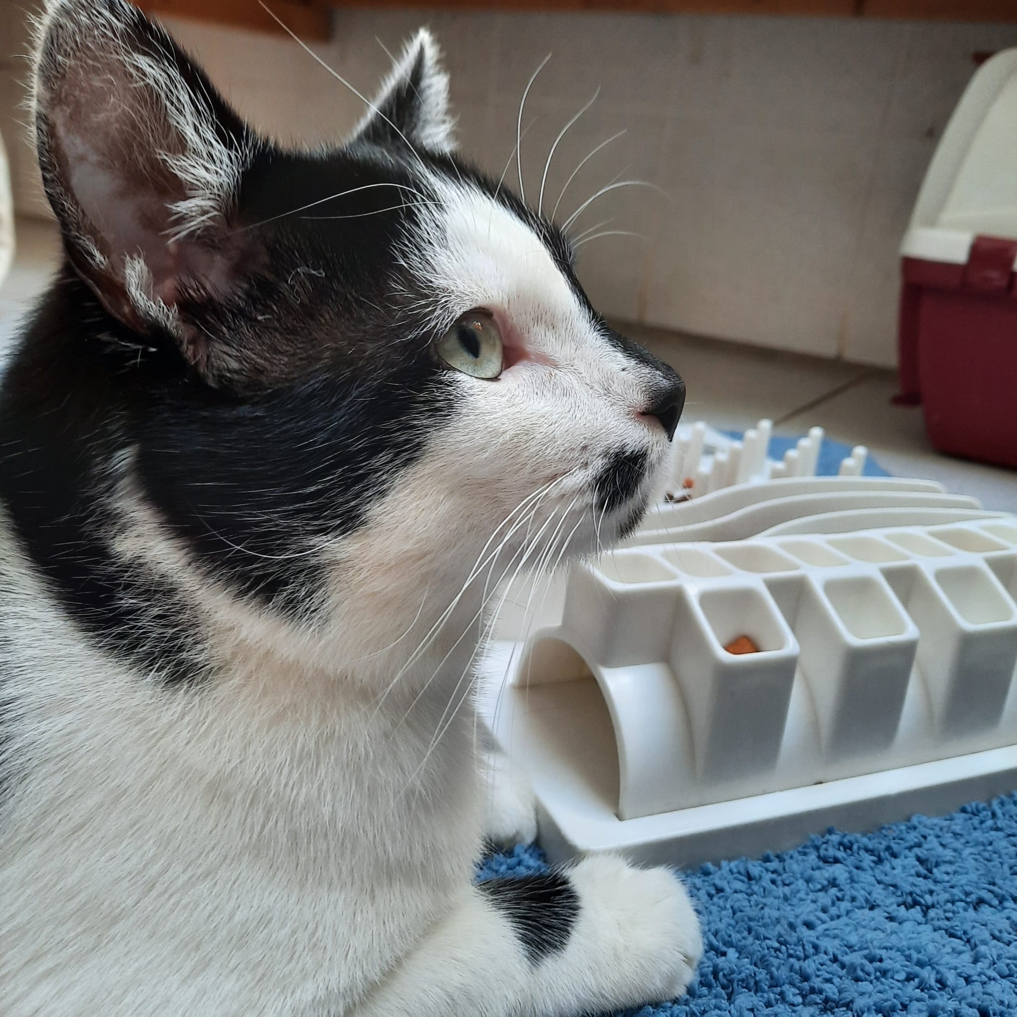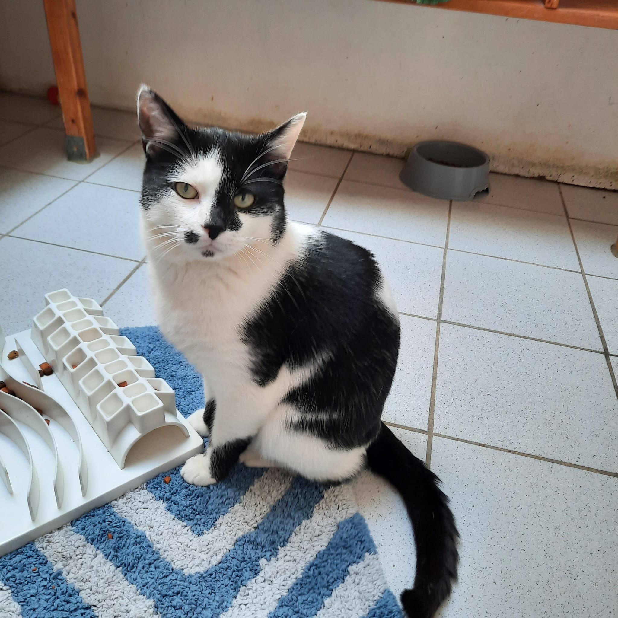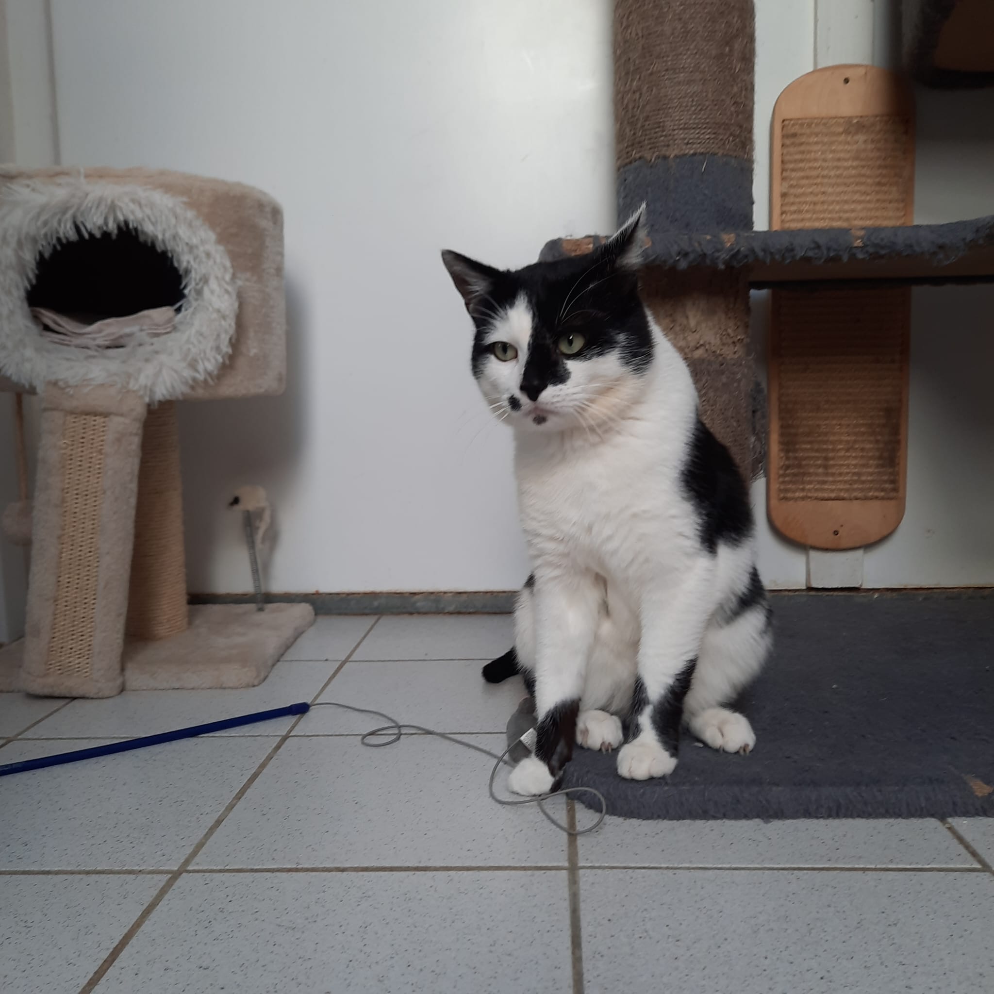 Unser hübscher und verschmuster Pati kam zu uns als Abgabekatze. Leider entwickelte das Kind der Familie eine Allergie, sodass er bei uns einziehen musste.