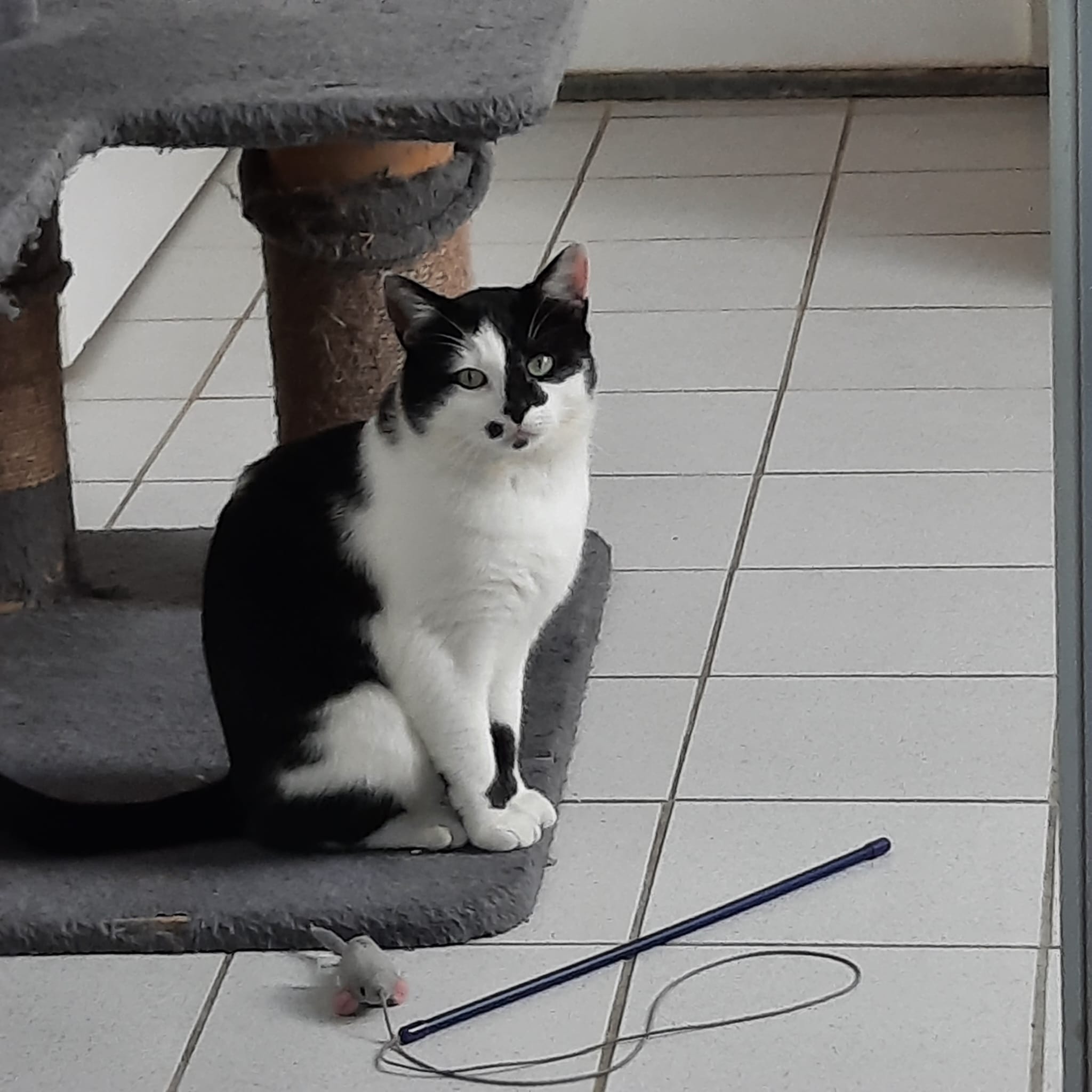Besonders angetan haben es ihm die Katzenangel und Ballspiele. Also ein richtig kleiner Spielratz, unser Pati.