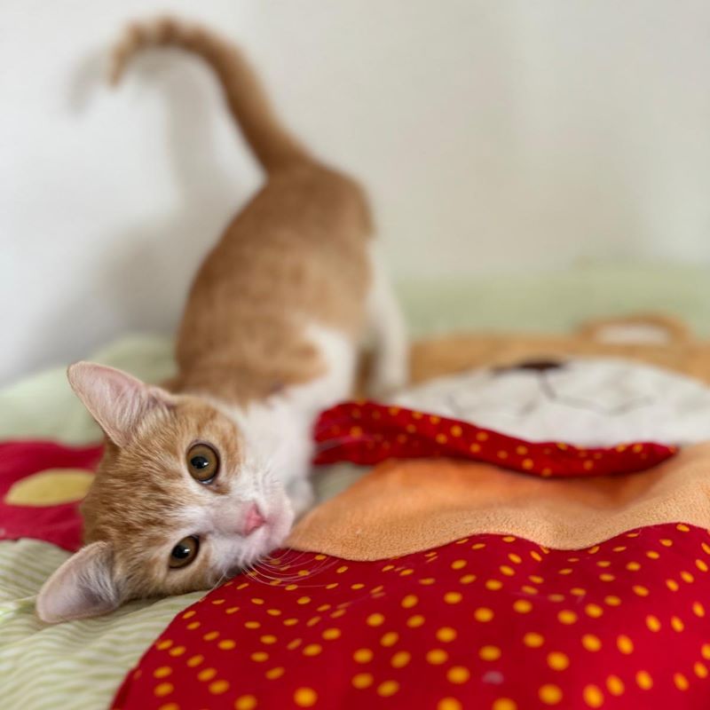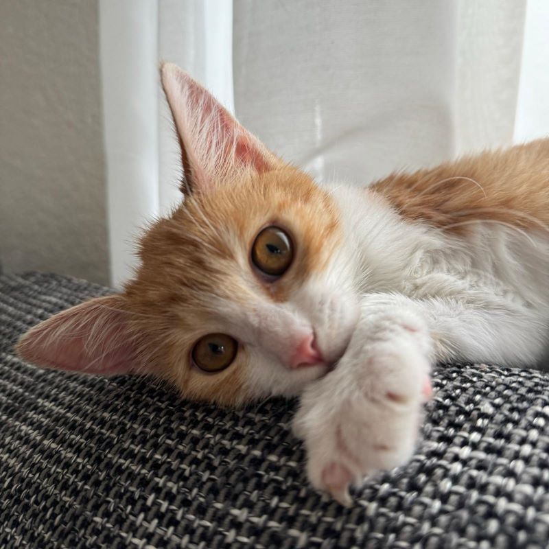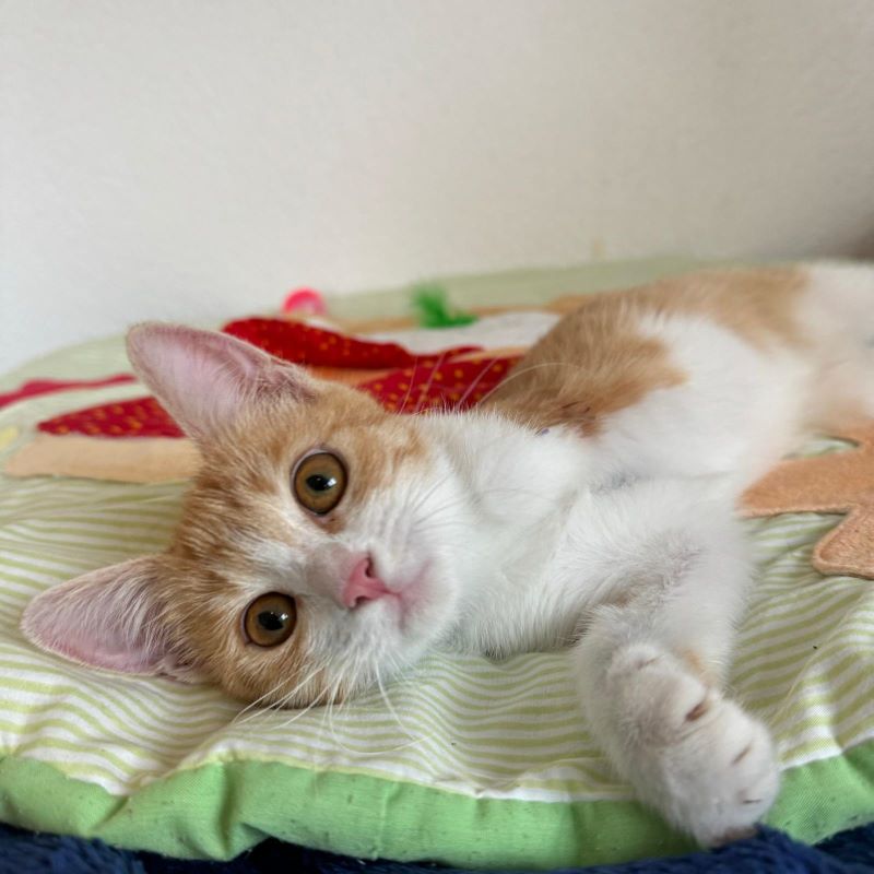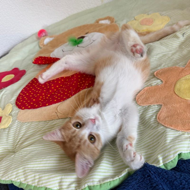 Runa ist eine zauberhafte, zarte Jungkatze. Sie liebt es gekuscht und umschmust zu werden, auch legt sie sich gerne auf den Rücken und lässt sich das Bäuchlein streicheln. Sie kann trotz ihrer drei Beinchen blitzschnell sein, spielt gerne und beobachtet alles mit großer Neugierde. Mit großer Aufmerksamkeit werden am Fenster die umherlaufenden Hühner und Hunde beobachtet und freundlich mit einem lauten "Miau" begrüßt.
