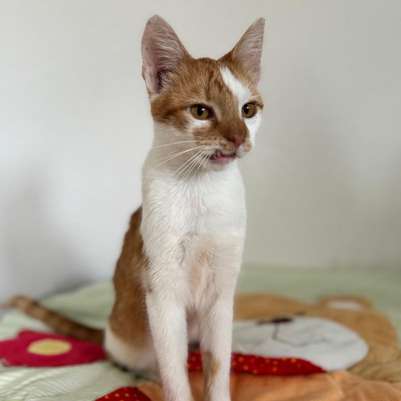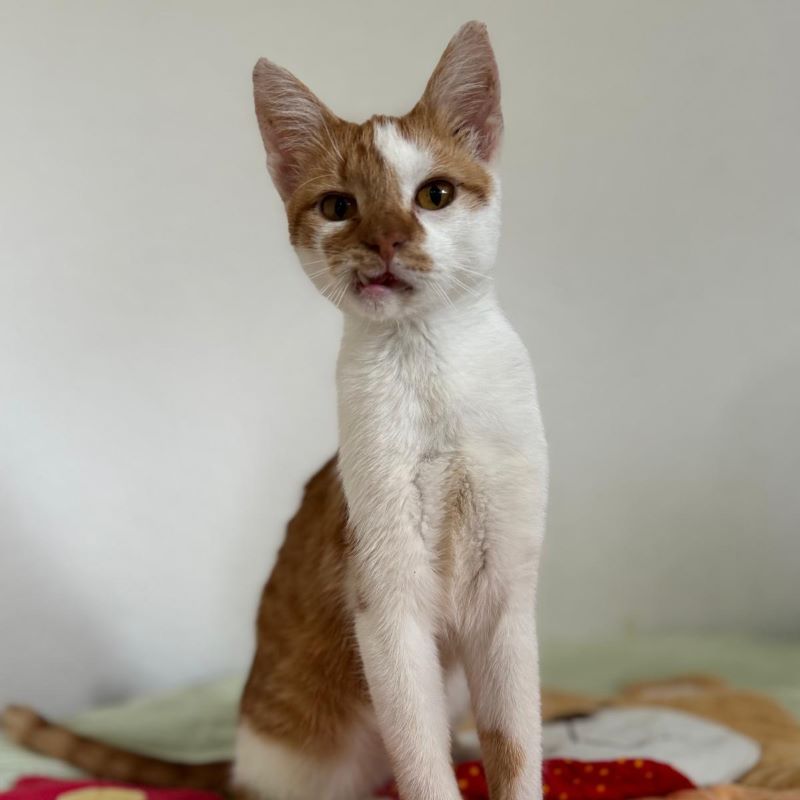 Trotz seiner veränderten Optik, ist er sooooo goldig, spielt gerne, überfällt seine Katzenfreudin Runa gerne mal und schaut sich auch in einigen Momenten bestimmte Situationen mit Ruhe und Sorgfalt mit etwas Abstand an.  Er isst gerne und problemlos, trotz der schiefen Kieferstellung.