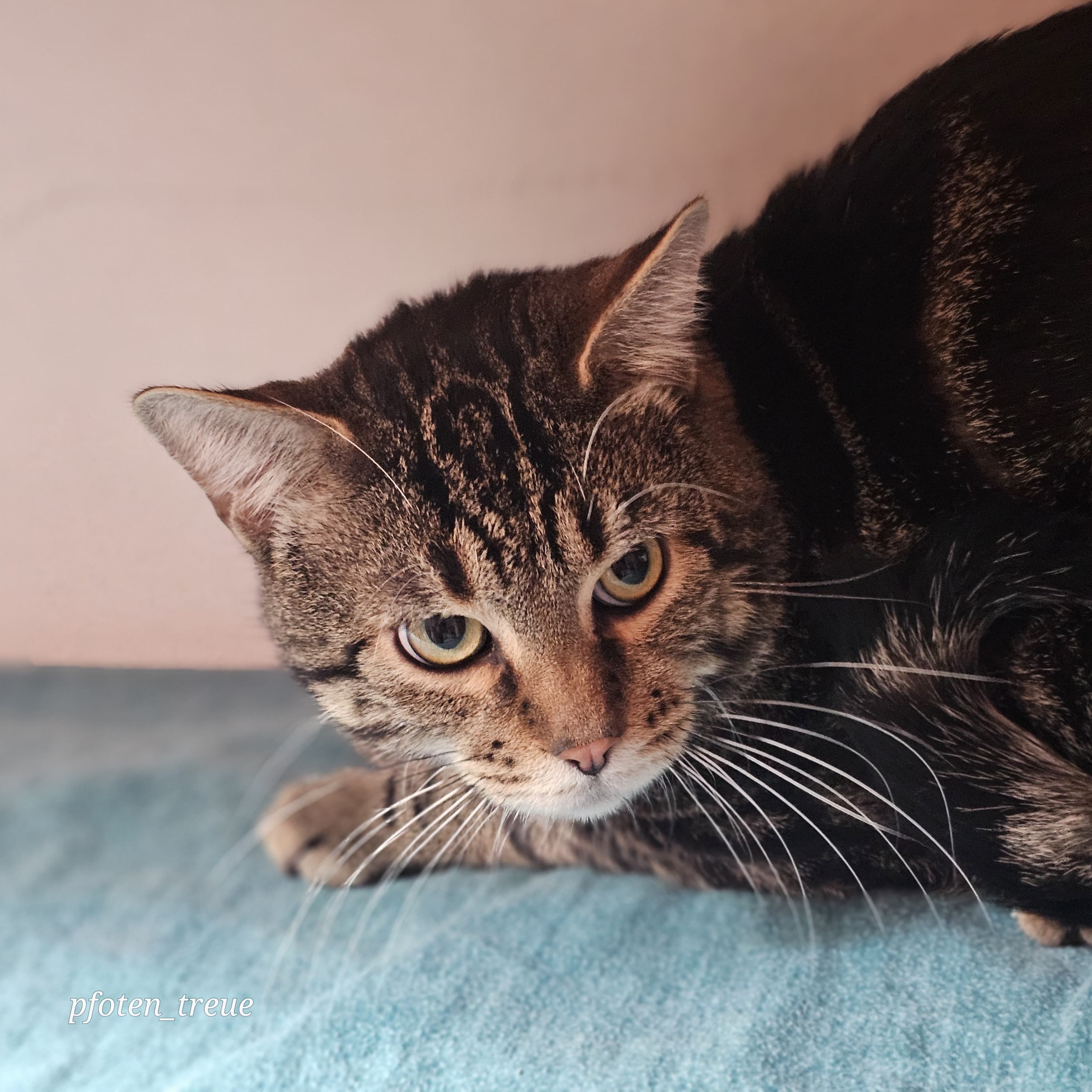Wenn man Karsten vorsichtig berührt, bleibt er ruhig liegen und lässt es einfach geschehen. Nach einer gewissen Zeit beginnt er sogar zu schnurren und zeigt, dass er die sanfte Nähe doch irgendwie genießen kann. Es braucht also ein bisschen Geduld und Einfühlungsvermögen, um Karsten wirklich zu erreichen. Aber wenn er sich öffnet, zeigt er einen zarten und liebenswerten Charakter.