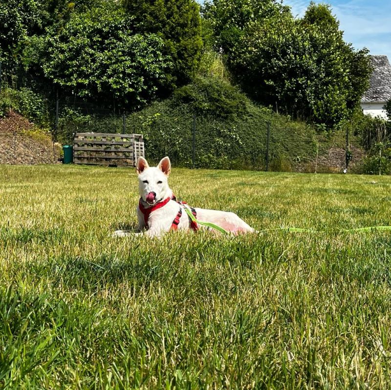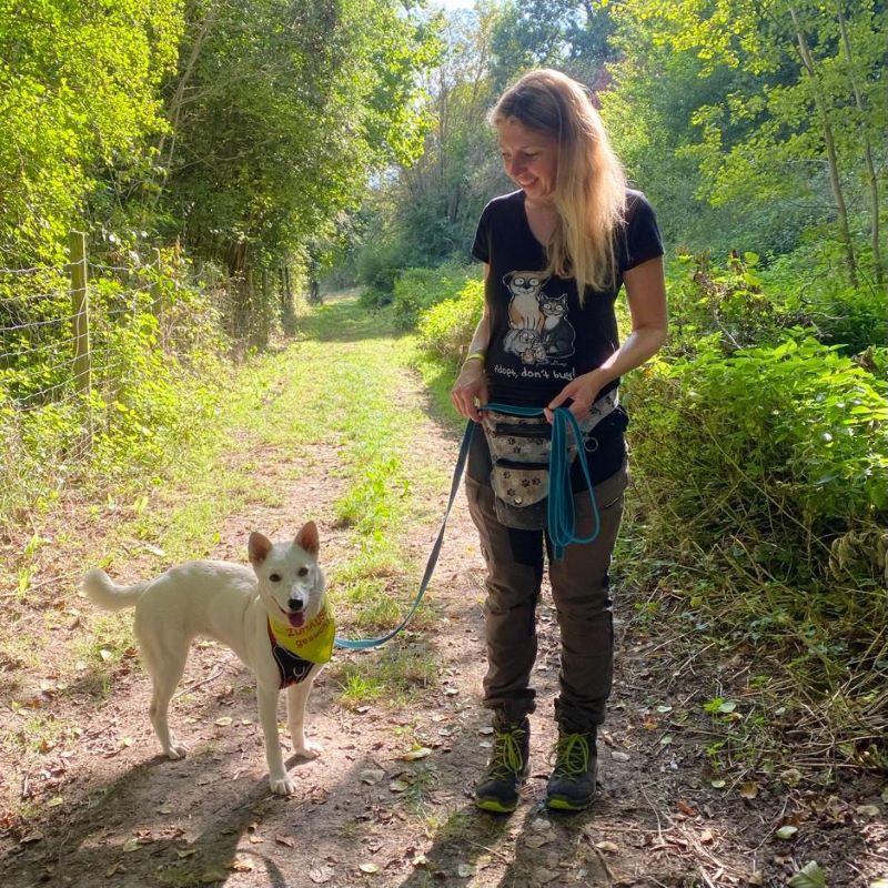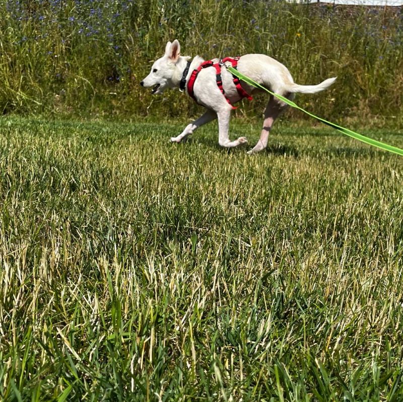 Sie hat in der Hundeschule in einen Nasenkurs geschnuppert und geht regelmäßig zum Mantrailing, woran sie viel Freude hat.