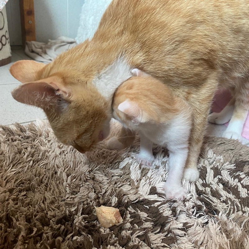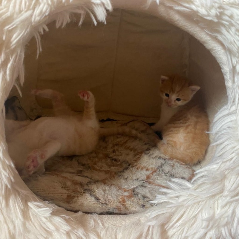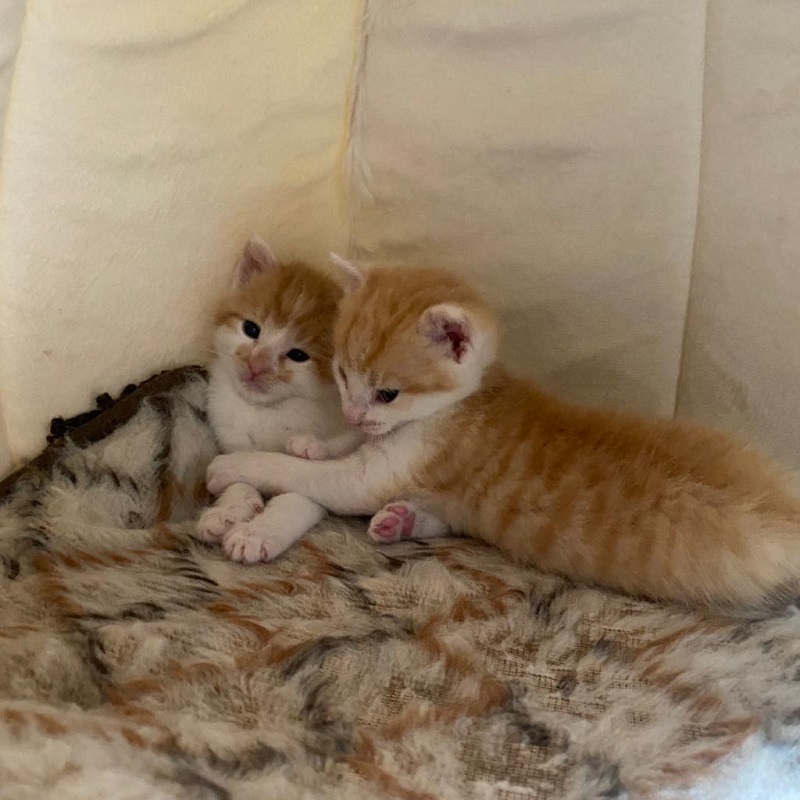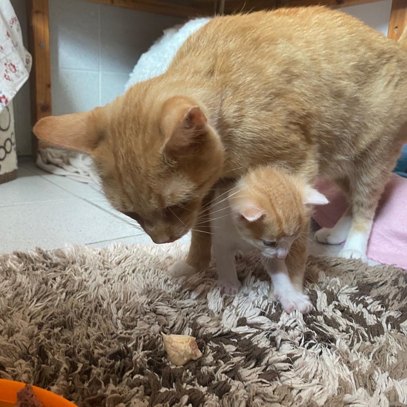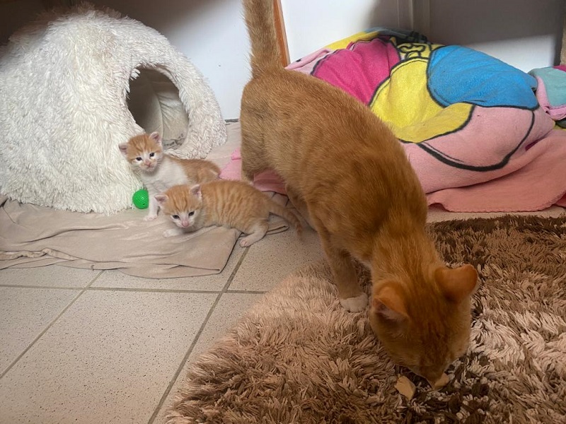 Lina ist eine tolle, vorsichtige junge Katzenmama. Sie mag es zu schmusen und Leckereien zu bekommen. Myrrhe ist der Coole von den beiden. Er schaut sich alles sehr besonnen an und lässt einfach machen. Bohne war so ein kleiner Tollpatsch und Entdecker. Er lief stolpernd aus dem Nest, am besten noch über den Essteller und verlief sich auch gerne mal in dem kleinen Zimmer, so dass er gleich lautstark nach Mama rief, die ihn doch bitte abholen möchte. Er ist es auch, der jetzt immernoch sehr an Lina hängt.