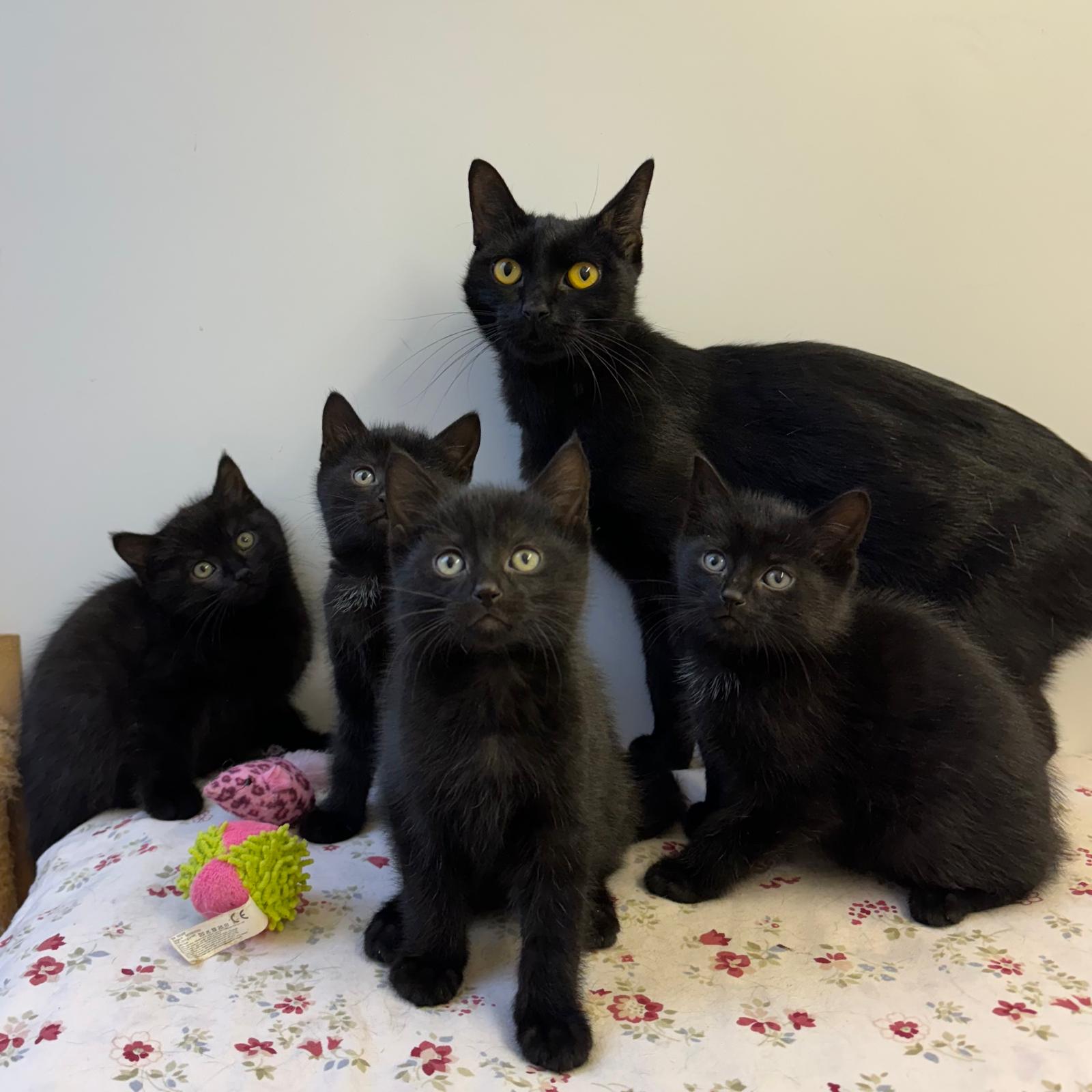 Grace ist eine elegante, schwarze Katzendame, deren genaues Alter leider unbekannt ist. Sie kam durch eine Übernahme zu uns ins Tierheim und brachte ihre vier Kitten mit. Derzeit ist sie noch unkastriert.