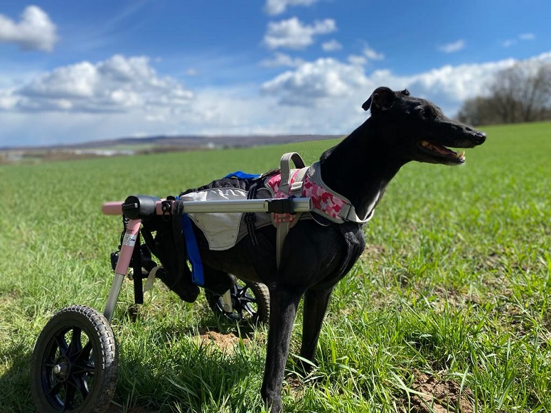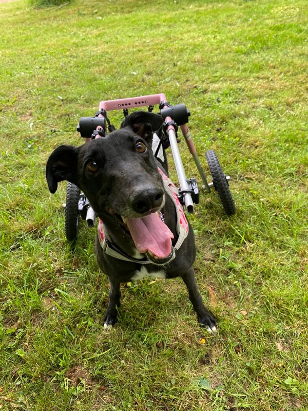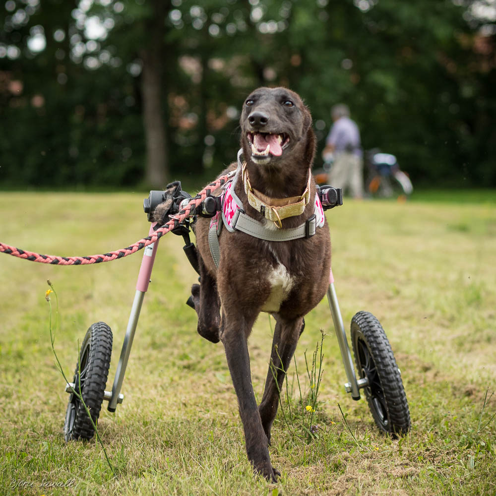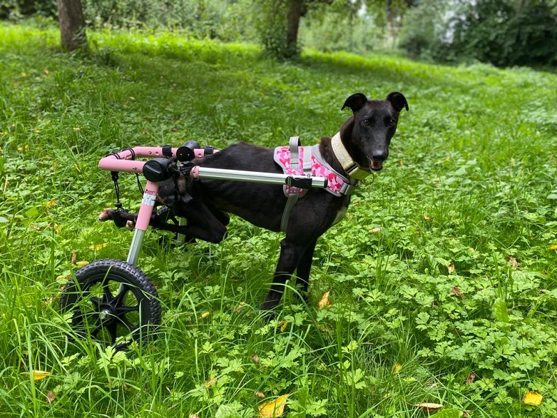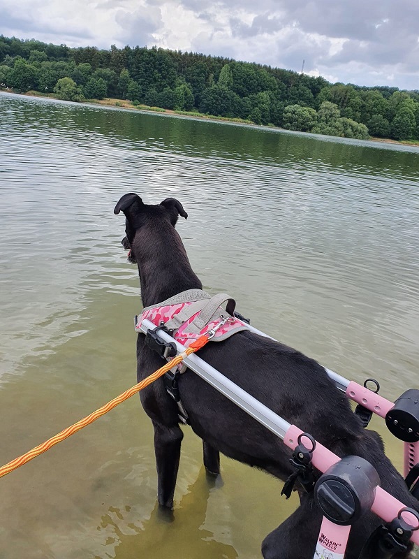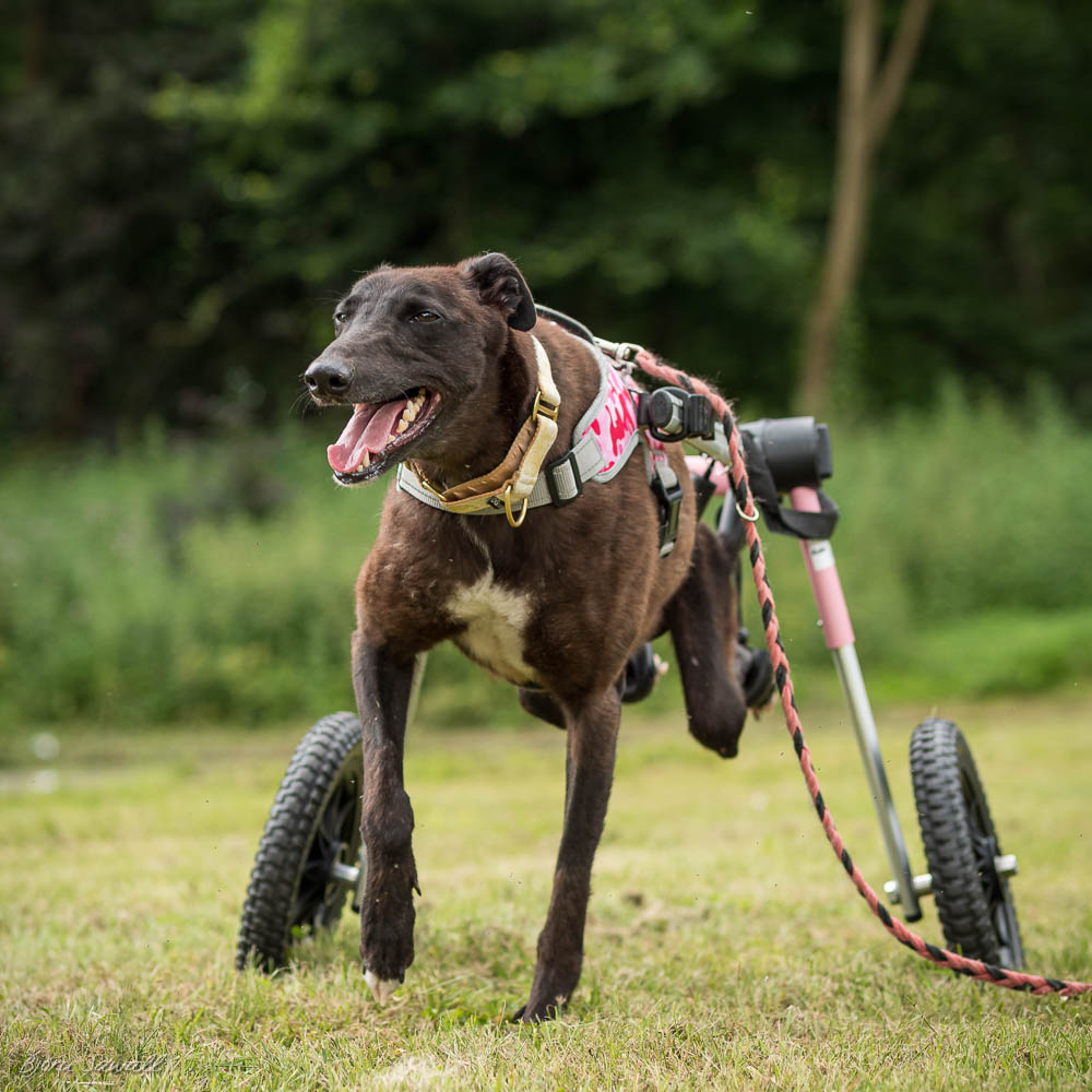 Bei uns im Tierheim hat Moya gelernt, mit ihrem Rohlstuhl zur flitzen und macht seitdem die Welt unsicher und dies mit RIESIGER Lebensfreude.