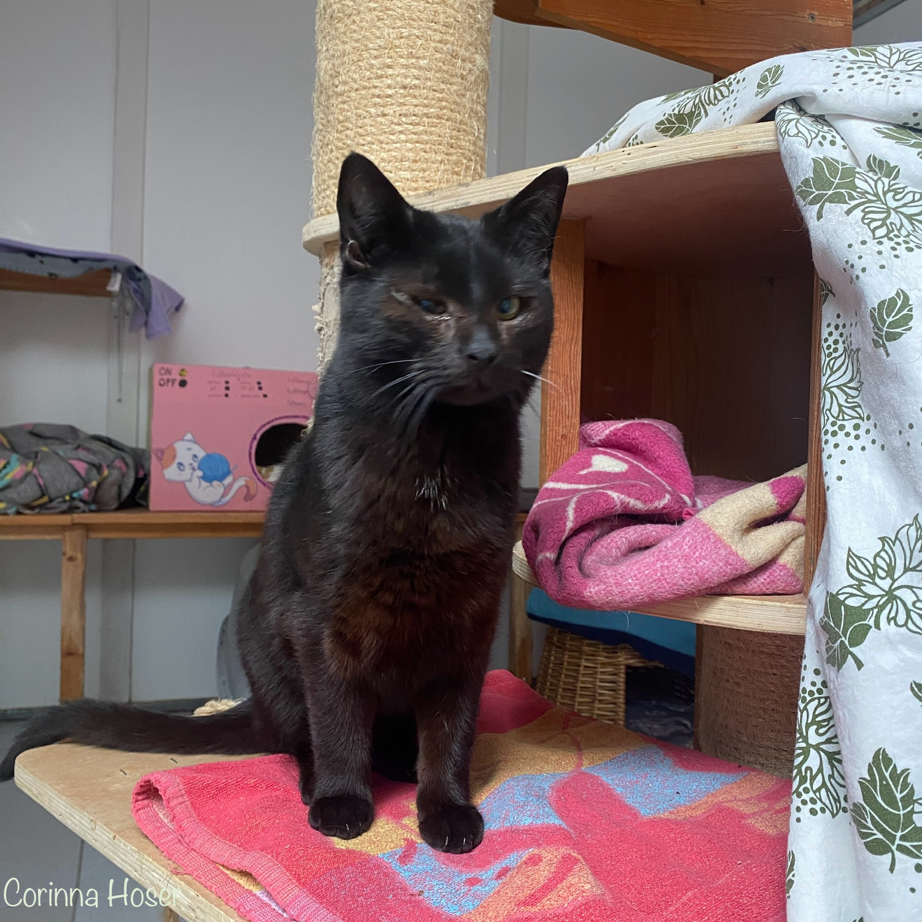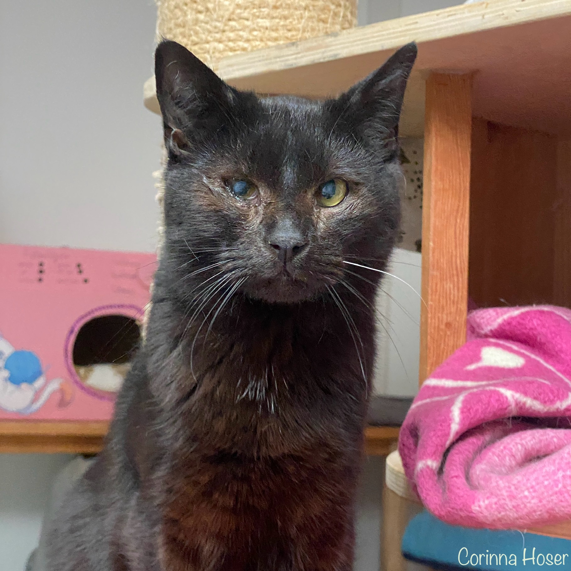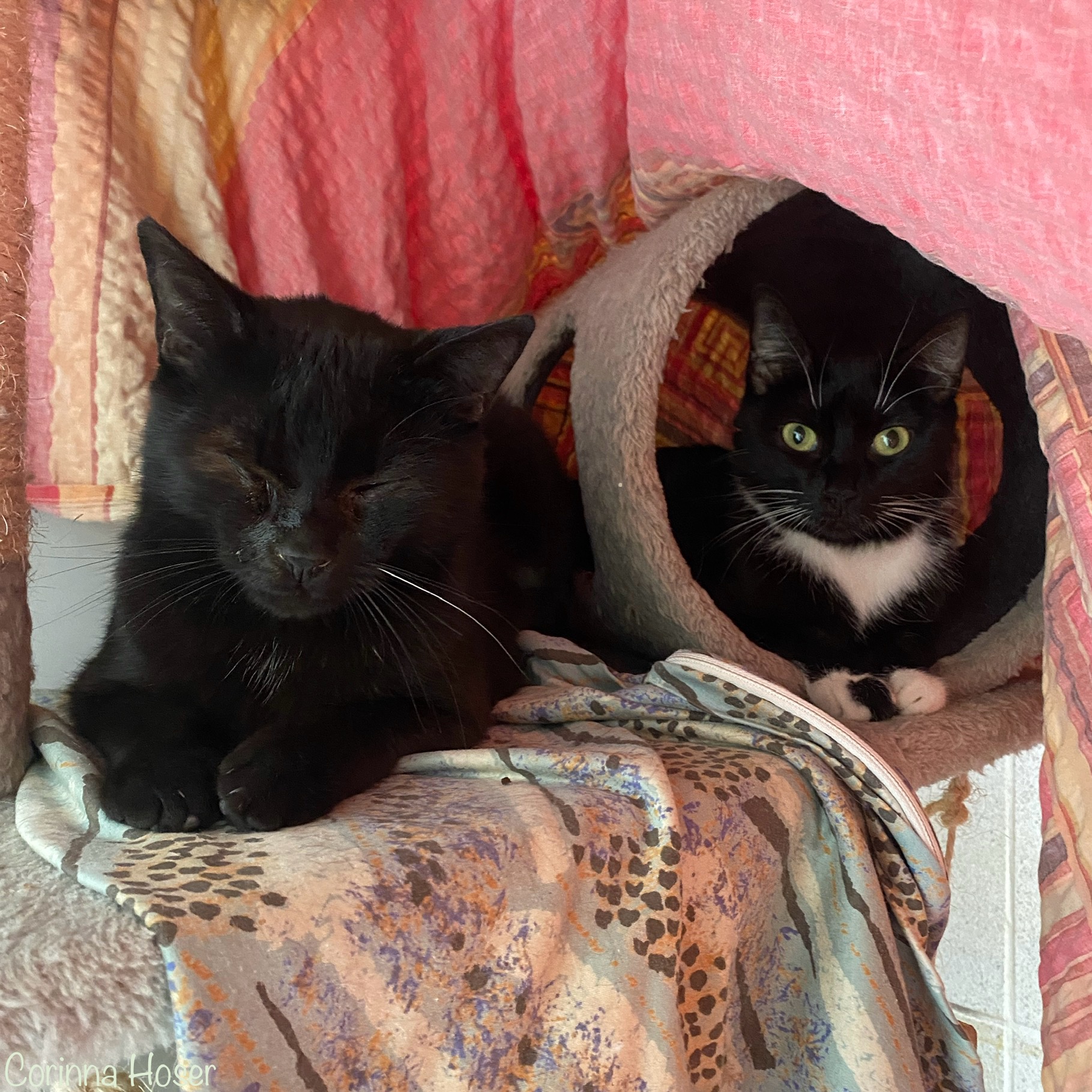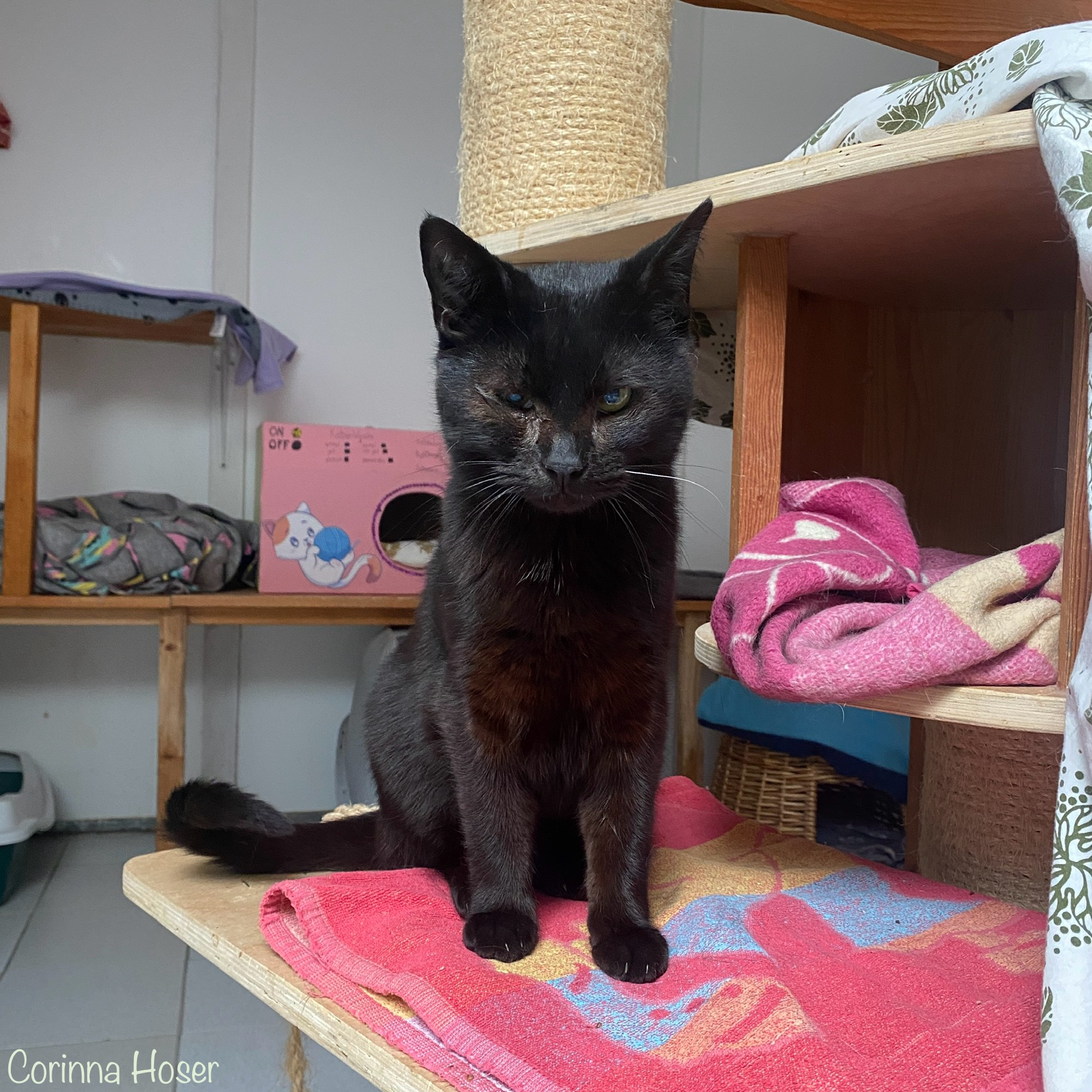 Oskar hatte leider nicht immer die Sonnenseite des Lebens. Als Kitten muss er mit dem Katzenschnupfenvirus infiziert worden sein, weshalb er blinde Flecken auf der Hornhaut zurück behalten hat. Er kann sehen, aber wieviel genau und wie „neblig“ sein Sehfeld ist, dass wissen wir leider nicht. Daher sollte das Zuhause auch in einer verkehrsarmen Gegend liegen. An sich sollten Sie für Oskar (und Tinka) ruhigerer Natur sein. Sie mögen es gerne harmonisch und freuen sich über ihre Menschen. Da geniessen sie dann die Streicheleinheiten und Leckereien.