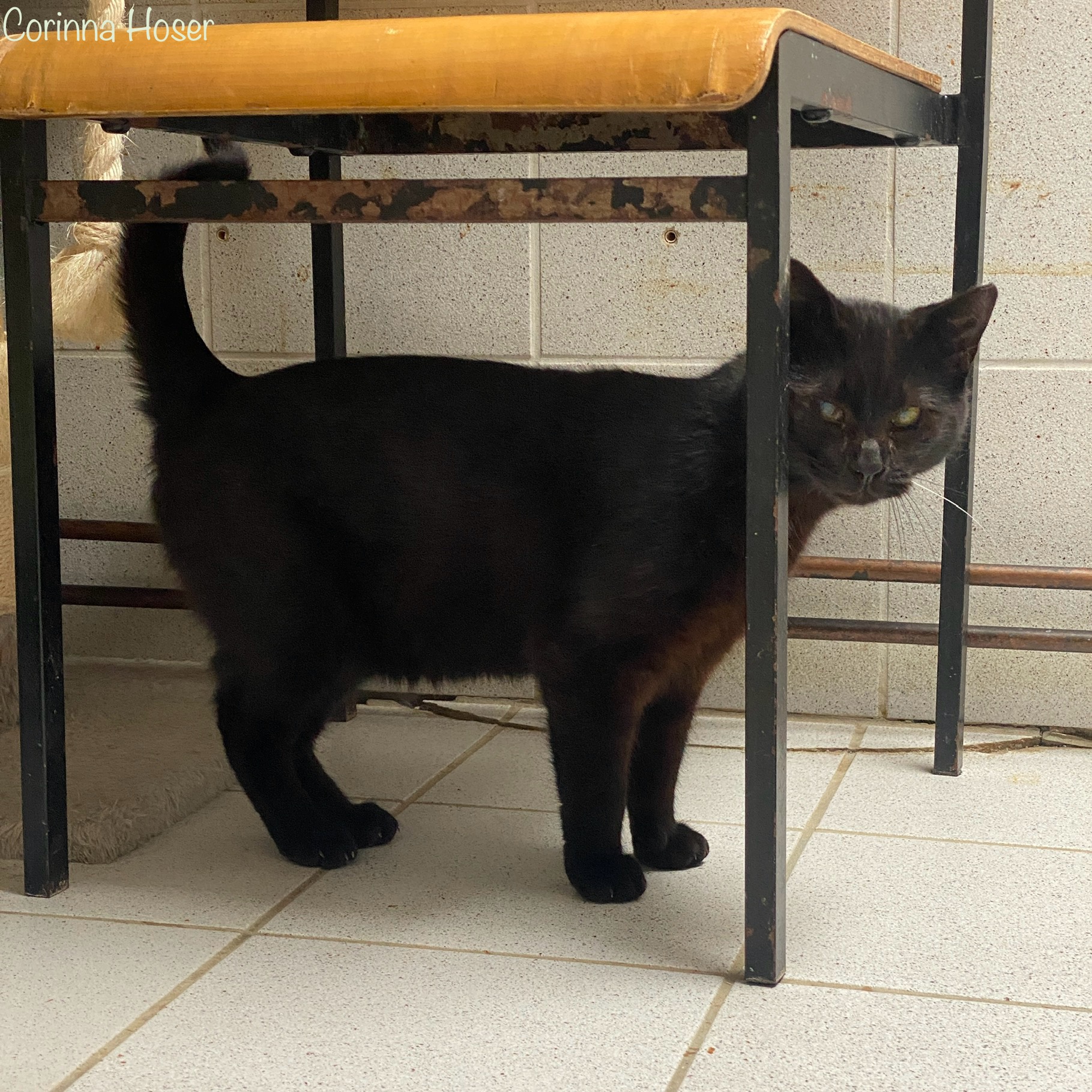 Zusammen mit mehreren freilebenden Artgenossen kam er aus Ottrau zu uns ins Tierheim. Sehr verängstigt und mit der Situation völligst überfordert verkroch er sich schnell. Seine Familie und Freunde sind recht scheu, aber die Pfleger sagen "Oskar ist der Sozialste von Allen" und einfach nur lieb.