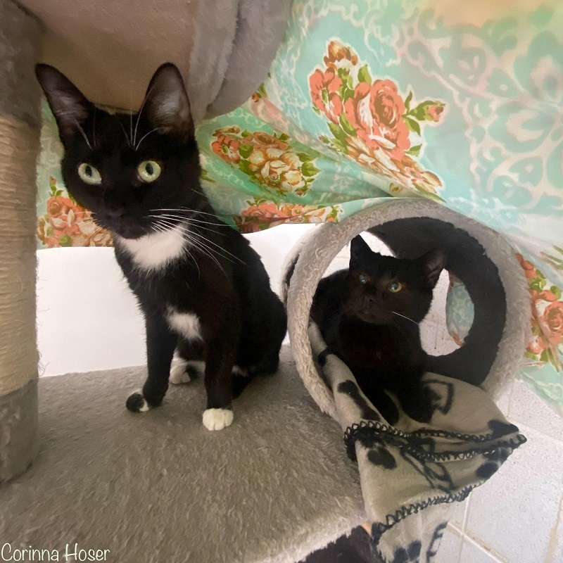 Mittlerweile kommt Oskar aus seinem Unterschlupf und freut sich, möchte gestreichelt werden und läuft im Zimmer umher. Im Schlepptau seine Angebetete Tinka. Sie hat er bei uns kennen und lieben gelernt. Und ja - es beruht auf Gegenseitigkeit. Es ist einfach zu schön den beiden zuzuschauen. Im Kratzbaum liegen sie immer zusammen. Daher wäre unser sehnlichster Wunsch, wenn beide gemeinsam ausziehen könnten. Oder wollen Sie so eine Freundschaft / Liebe trennen? Nun hat er aber auch noch einen Kumpel kennengelernt: Robert. Man merkt wie sozial Oskar einfach ist. Jeder Neuling wird begrüßt. Und in Robert hat er einen Kumpel zum Raufen, Jagen und Toben gefunden. Es ist herrlich den beiden zuzuschauen. Oskar ist seitdem noch offener geworden und es scheint, als ob er nochmal seine Kinderstube, die er auf der Straße verbracht hat, nachholt. Dennoch bleibt Tinka die Wahl Nr. 1. Sobald Oskar etwas Angst hat, versteckt er sich hinter Tinka. Sooo goldig. Ein absolutes Dreamteam.
