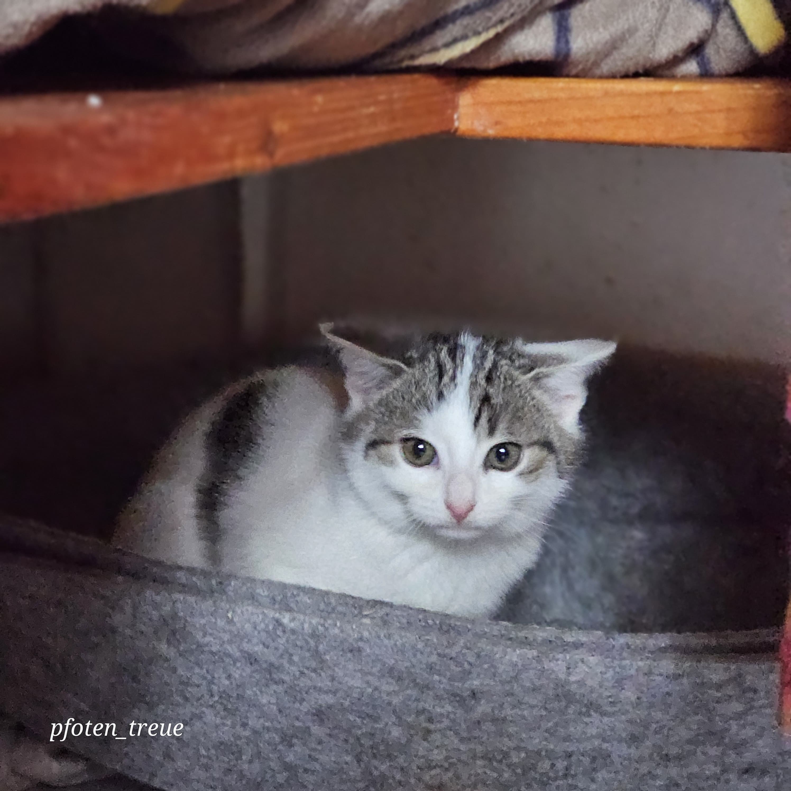 Mittlerweile ist Zulula nicht mehr ganz so scheu, wenn auch immer noch vorsichtig und etwas zurückhaltend. Sie ist ein ruhiges, eher introvertiertes Katzenmädchen, das sich zwar nicht sofort in den Vordergrund drängt, aber durchaus neugierig und verspielt ist. Sie zeigt immer öfter Interesse an ihrer Umgebung und wagt es, sich näher an Menschen heranzutasten. Sie toleriert sanfte Berührungen und ist dabei weniger angespannt als zu Beginn.