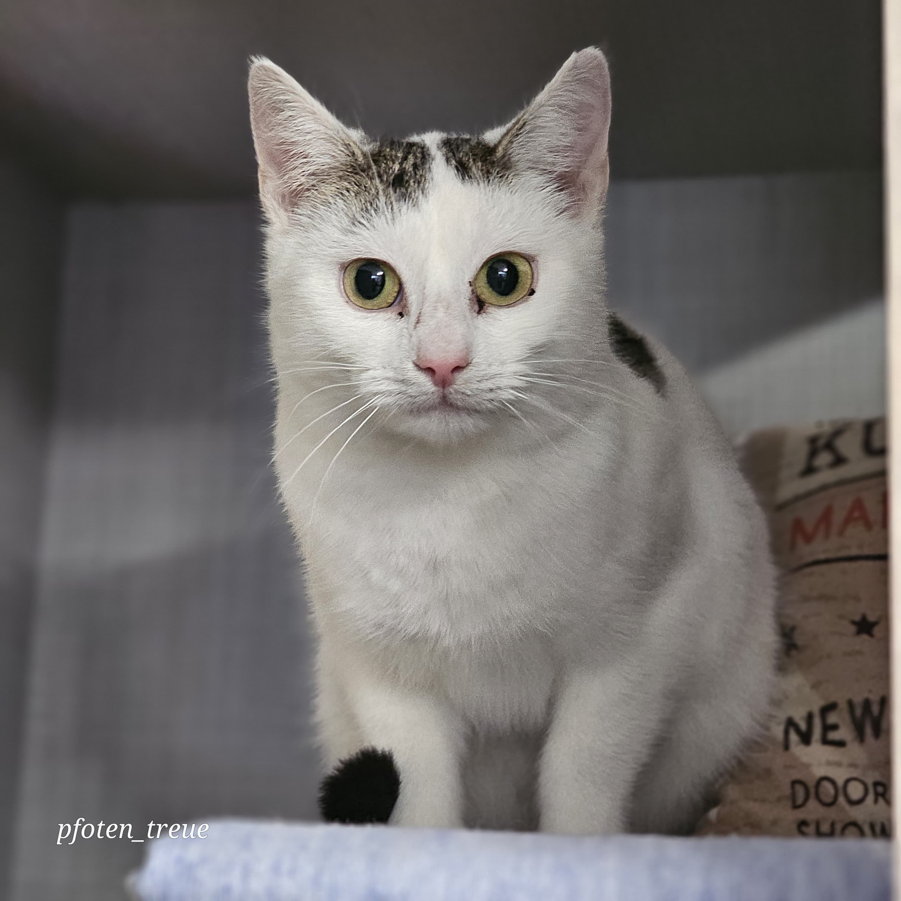 Bei uns zeigt sich die hübsche Katzendame mittlerweile aufgeweckt und interessiert. Sie sucht den Kontakt zum Menschen und mag es gern gestreichelt zu werden. Wenn sie die Nase voll hat, dann geht sie. Manchmal kann es aber auch sein, dass sie tatzt. Mal sind die Krallen leicht ausgefahren, mal nicht. Je nach Laune der Prinzessin. Sie ist aufgeweckt und möchte die Welt nun entdecken. Man merkt es ihr richtig an. Spiel und Spaß sollten daher im neuen Zuhause nicht fehlen. Die Lady möchte vieles nachholen und da sind SIE jetzt an der Reihe. Wer schenkt dieser tollen Katzendame mit einem tollen und starken Charakter ein schönes Zuhause?