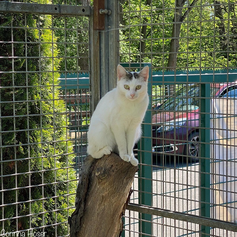 Mit Artgenossen kommt Adele teils gut zurecht. Man merkt, dass sie das Kommando bei uns im Freilaufbereich übernommen hat und das sie das sehr genießt. Wir können uns vorstellen, dass sie mit Sora ausziehen kann, da diese zurückhaltend ist und sich unterordnet. Adele kann aber auch alleine ins neue Zuhause einziehen, wenn man ihr nach einer angemessenen Eingewöhnungszeit und dem Vertrauensaufbau, Freigang gewährt. Somit kann sie sich dann dort ihre Katzenkumpels selbst suchen.