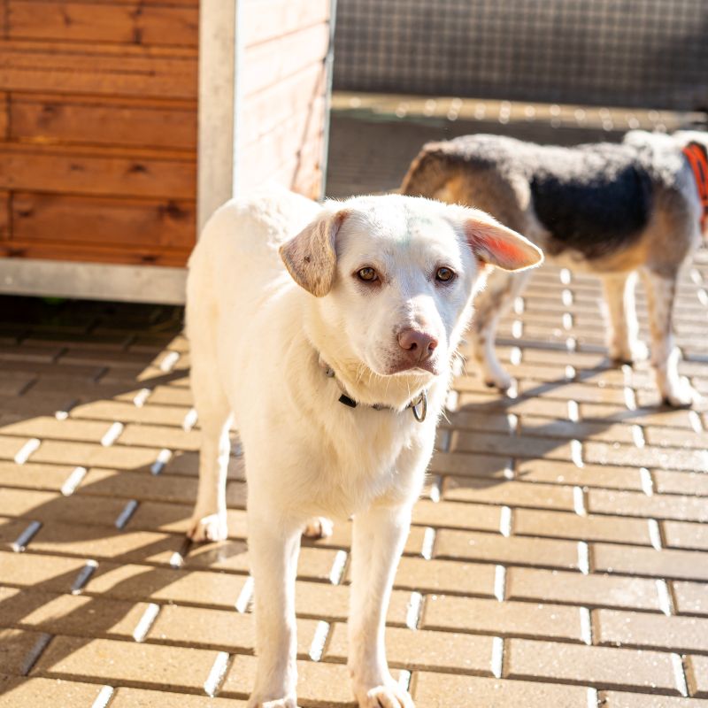 Ich bin ein fröhlicher und kontaktfreudiger Hund. Ich gehe gerne auf Menschen zu, aber manchmal bin ich auch kurz ein bisschen schüchtern, vor allem in neuen Situationen. Mit ein wenig Zuspruch taue ich aber auch schnell auf. Ursprünglich komme ich aus Rumänien und bin mit 12 anderen Hunden gekommen. Andere Hunde finde ich super. Bis jetzt verstehe ich mich sowohl mit Rüden als auch mit Hündinnen prima. Auch kinderlieb bin ich. Katzen sind für mich eher komisch, ich beobachte sie interessiert, aber so richtig weiß ich noch nicht, was ich von ihnen halten soll. Treppen sind für mich noch ein kleines Abenteuer, mit etwas Motivation, Zureden und Leckerchen schaffe ich diese aber ganz gut. Testweise habe ich mir mal ein Auto angeschaut, aber das finde ich merkwürdig. Ich habe nur einmal neugierig in den Kofferraum geschaut, dann würde ich in den Kofferraum hineingesetzt aber da bin ich mir noch unsicher, ob ich auch im Auto fahren kann, das müsste ich noch besser kennenlernen und üben. Kaninchen habe ich durchs Gitter auch gesehen, interessieren mich nicht besonders. Aber wie es mit anderen Tieren aussieht, müsste man im neuen Zuhause noch testen. Meine Leinenführigkeit muss ich noch verbessern, aber ich gebe mein Bestes. Es riecht alles so toll und dementsprechend laufe ich wild umher. Am besten ist, wenn meine neue Familie mit mir zur Hundeschule geht.