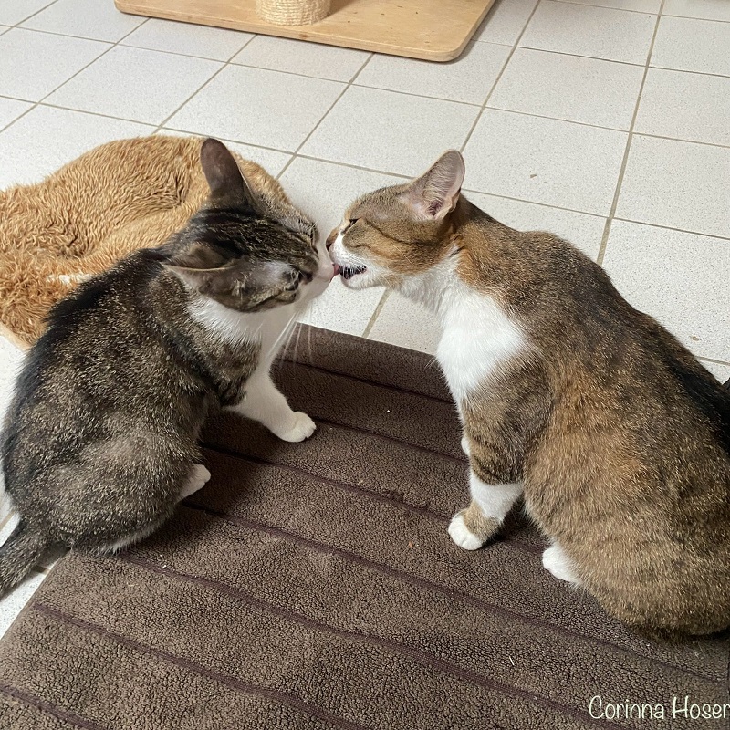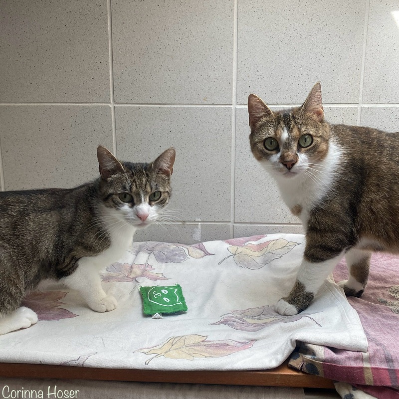 Beide sind neugierig und möchten die Welt erkunden, daher suchen sie ein Zuhause mit Freigangsmöglichkeit in einer verkehrsarmen Umgebung. Sie werden nur zusammen vermittelt.