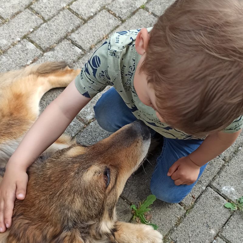 Im Umgang mit Kinder war sie vorsichtig, suchte auch aktiv den Kontakt und ließ Streicheleinheiten gerne zu. Bei kleineren Kindern kann die Standfestigkeit allerdings auf die Probe gestellt werden, da Lotta in ihrer Freude, schon mal etwas ungestüm werden kann.