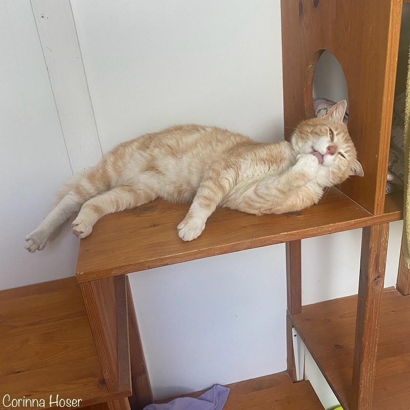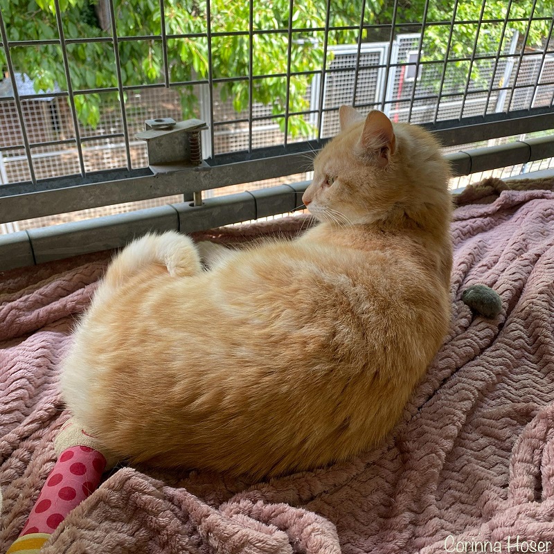 Neben seiner lebhaften Art zeigt Robin auch eine gemütliche Seite: Er genießt es, zusammen mit seinem Menschen ein Mittagsschläfchen auf dem Sofa zu machen oder beim Fernsehen ausgestreckt entspannt auf der Fensterbank zu liegen. Hochheben lässt er sich problemlos, wenn man es sicher und selbstverständlich macht. Gestreichelt wird er besonders gern am Köpfchen – und dank seiner klaren Körpersprache merkt man sofort, wann er genug hat.