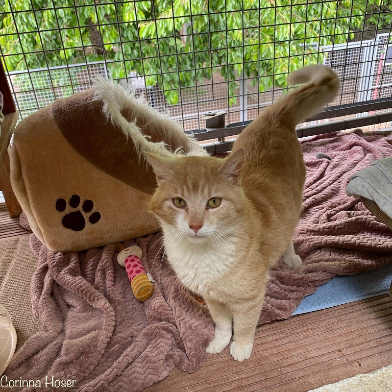 Robin ist ein echter Entdecker: neugierig, aufmerksam und voller Energie. Er möchte am liebsten überall dabei sein und nichts verpassen. Spielen ist für ihn das Größte – besonders, wenn es um das Jagen des Rollo-Bandes geht, das könnte er stundenlang machen. Seine Krallen setzt er manchmal noch etwas ungestüm ein, doch in den letzten Wochen hat er schon große Fortschritte gemacht.