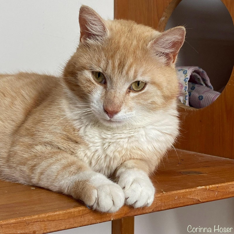 Er geht offen und freundlich auf jeden zu, begrüßt neue Bekanntschaften charmant und streicht dabei gern um die Beine. Manchmal erinnert er fast an einen Hund – er empfängt uns mit einem aufgeregten Taubengurren und begleitet seinen Menschen aufmerksam auf allen Wegen durchs Haus. Alltagsgeräusche wie Staubsauger oder Waschmaschine bringen ihn nicht aus der Ruhe, was darauf hindeutet, dass er schon einmal in einem Zuhause mit Menschen gelebt hat.