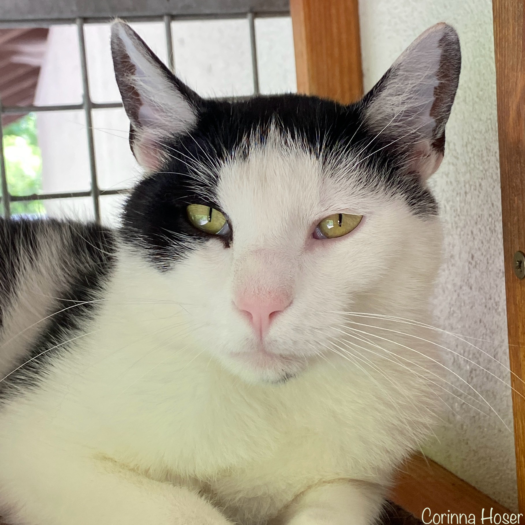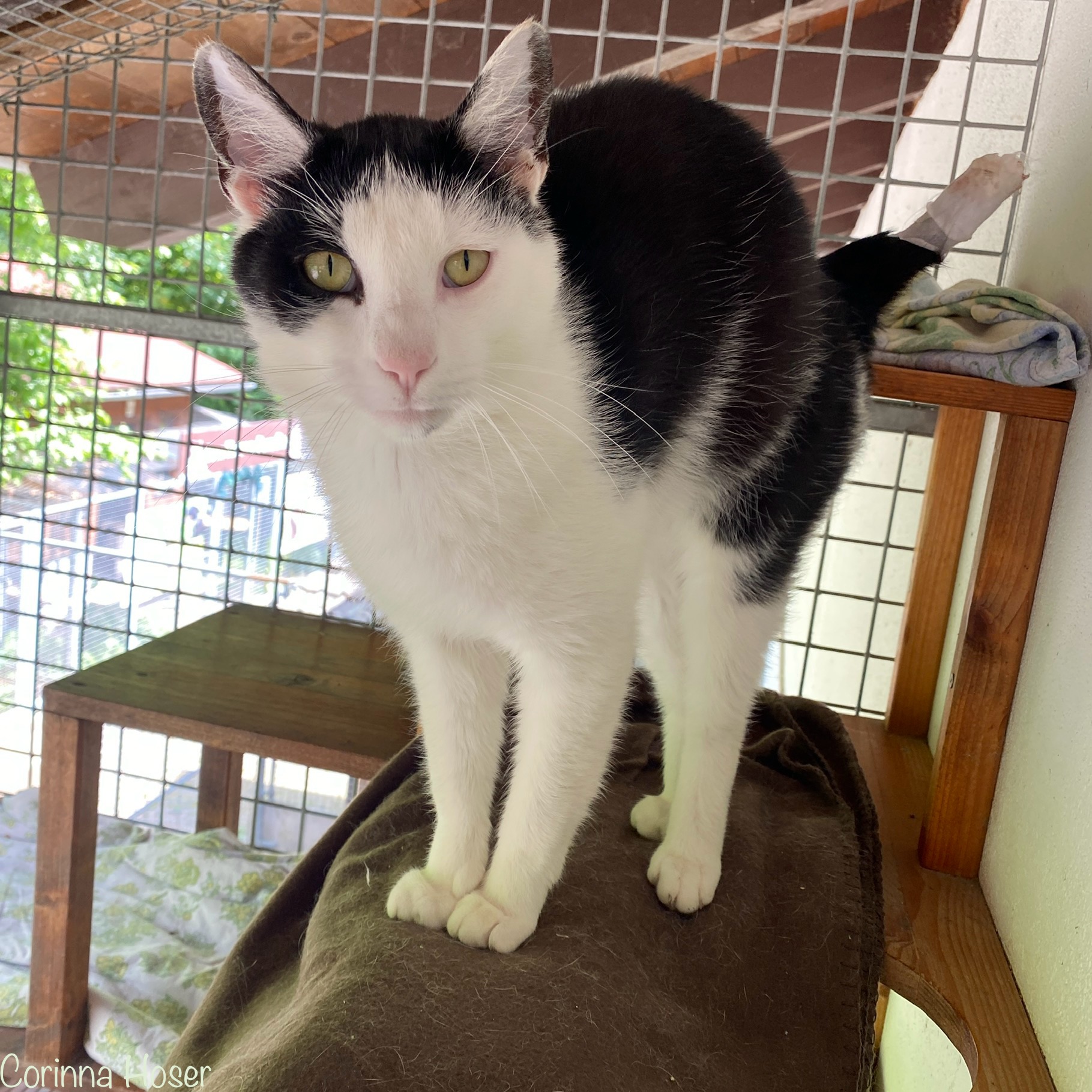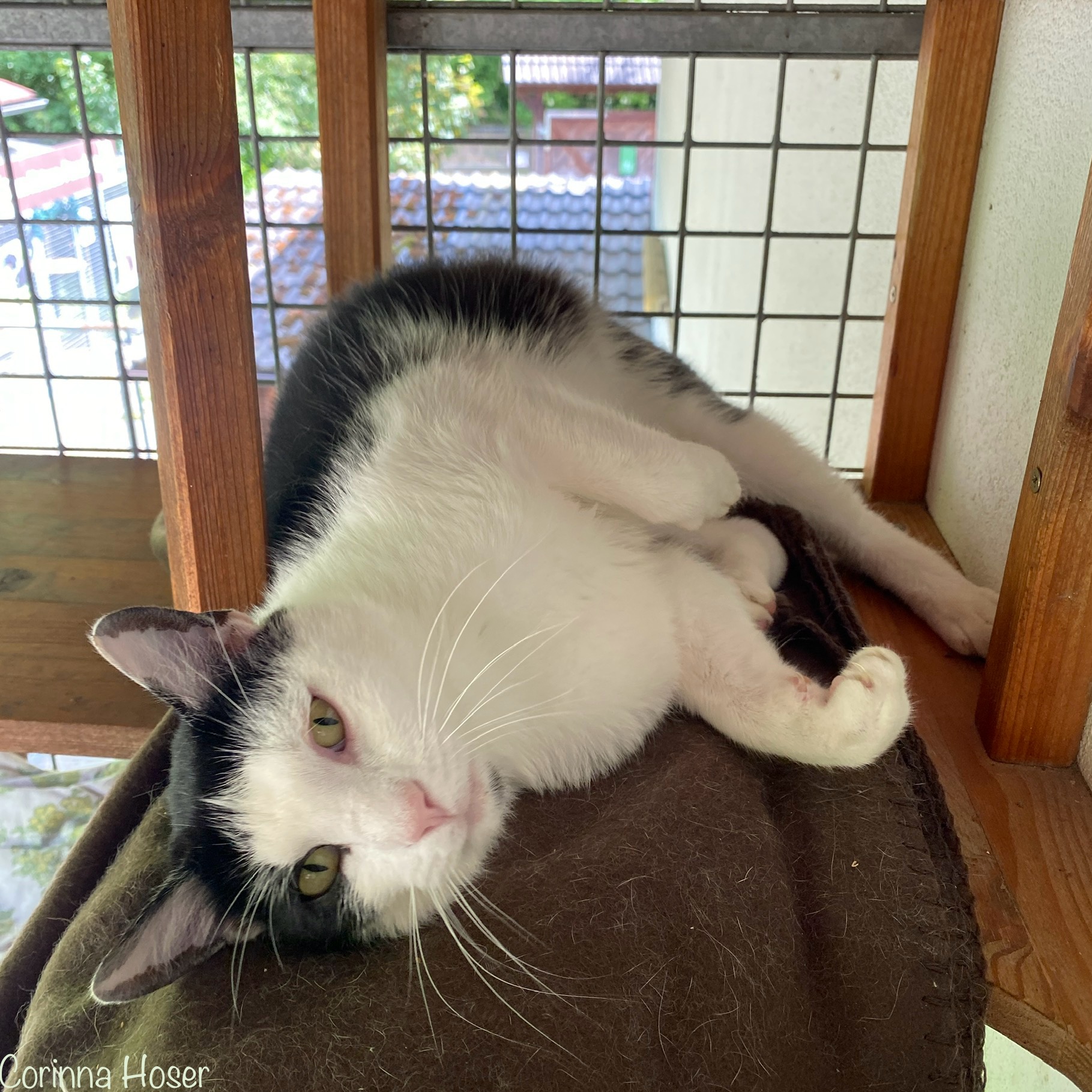Dieses kleine Handicap ist für Robert aber gar nicht so schlimm. Er meistert seinen Tierheimalltag hervorragend. In Kater Oskar hat er anfangs einen tollen Spielkameraden gefunden. Die beiden tobten durch das Zimmer und es war sehr lustig ihnen dabei zuzuschauen. Mittlerweile schläft Robert gern über den Tag und man sieht ihn gar nicht mehr so viel mit Oskar spielen. Robert ist sehr sozial, was seine Artgenossen angeht. Auch mit Tinka und Robin hat er überhaupt keine Probleme. Er liegt gern auf dem Balkon und genießt die frische Luft.