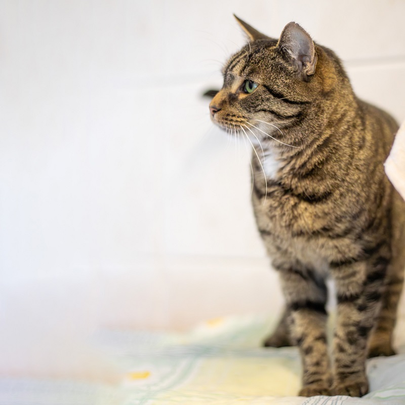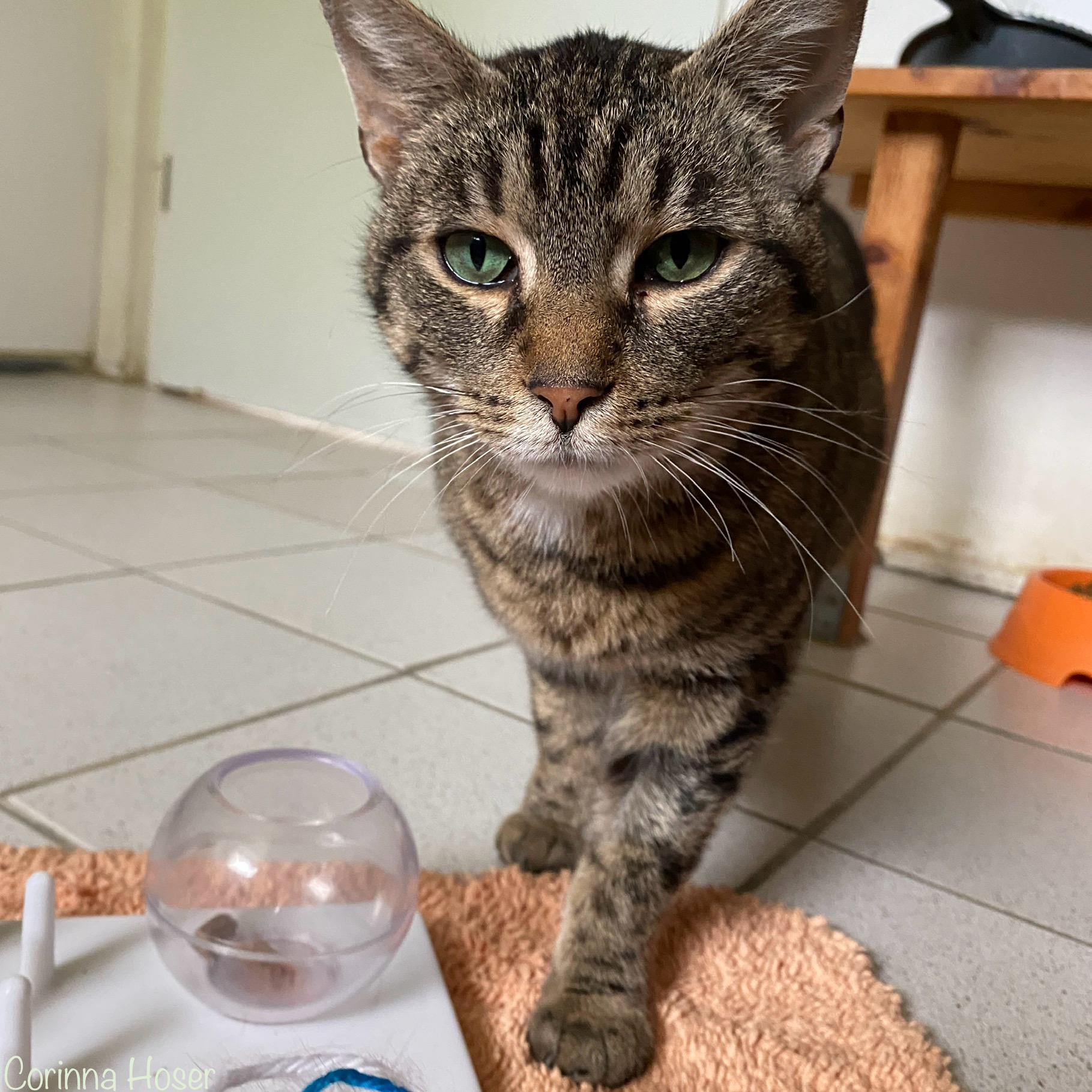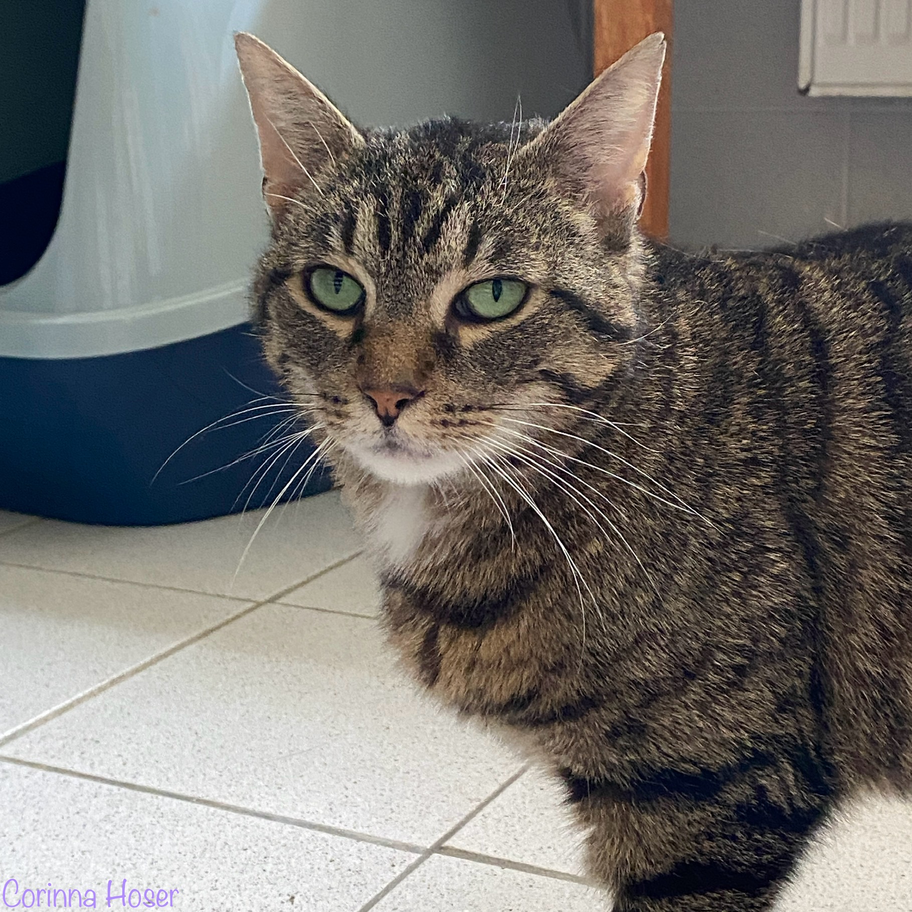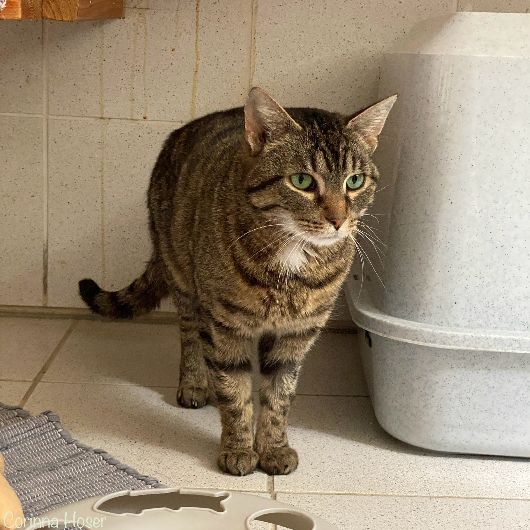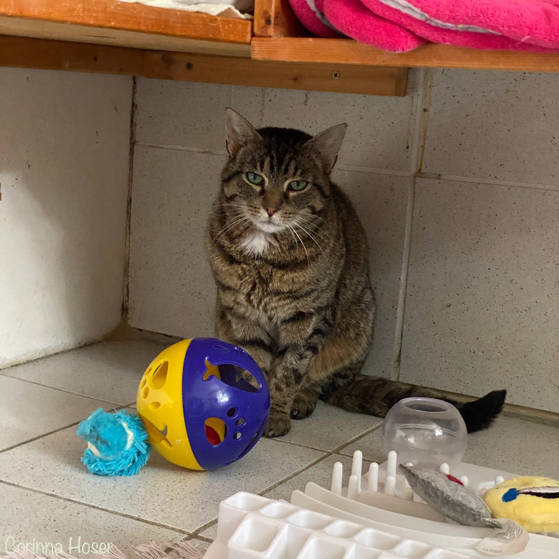 Olivia kam mit weiteren Artgenossen Mitte März als Fundkatzen aus Ottrau zu uns ins Tierheim. Die Situation war für die gesamte Gruppe (bestehend aus Oliver, Odin, Ottmar, Otto, Otterich, Oskar, Osman und Olivia) anfangs sehr stressbehaftet.