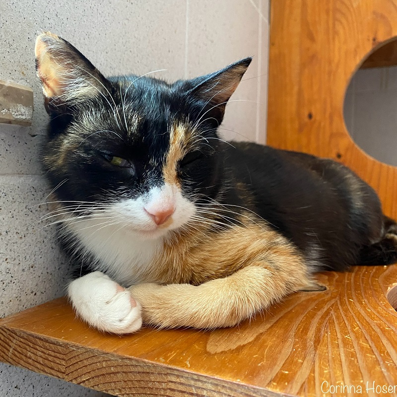 Sie ist eine ruhige Katzendame die sich vorbildlich um ihre Kinder sowie auch um die zwei Adoptivkinder kümmert. Wird ihr der Trubel zu viel und die Kleinen wollen rangeln und spielen, dann springt sie einfach auf eine der oberen Etagen und ruht sich aus.