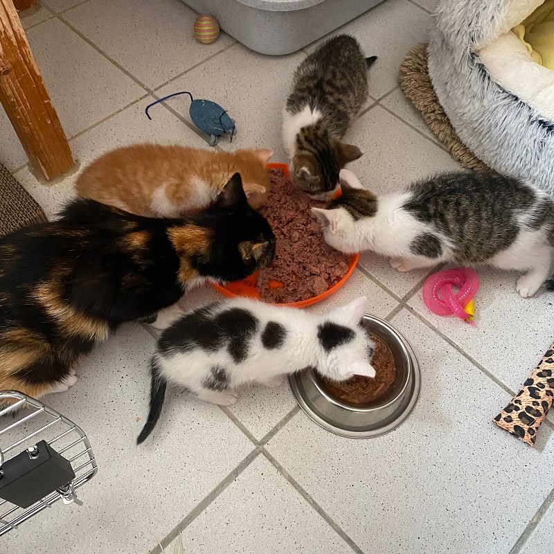 Menschen mag sie gerne und genießt die Streicheleinheiten. Wie sie sich mit anderen erwachsenen Artgenossen versteht können wir noch nicht sagen, da sie mit der Rasselbande in einem eigenen Zimmer untergebracht ist und sich erstmal um ihre Rolle als Mama kümmert.