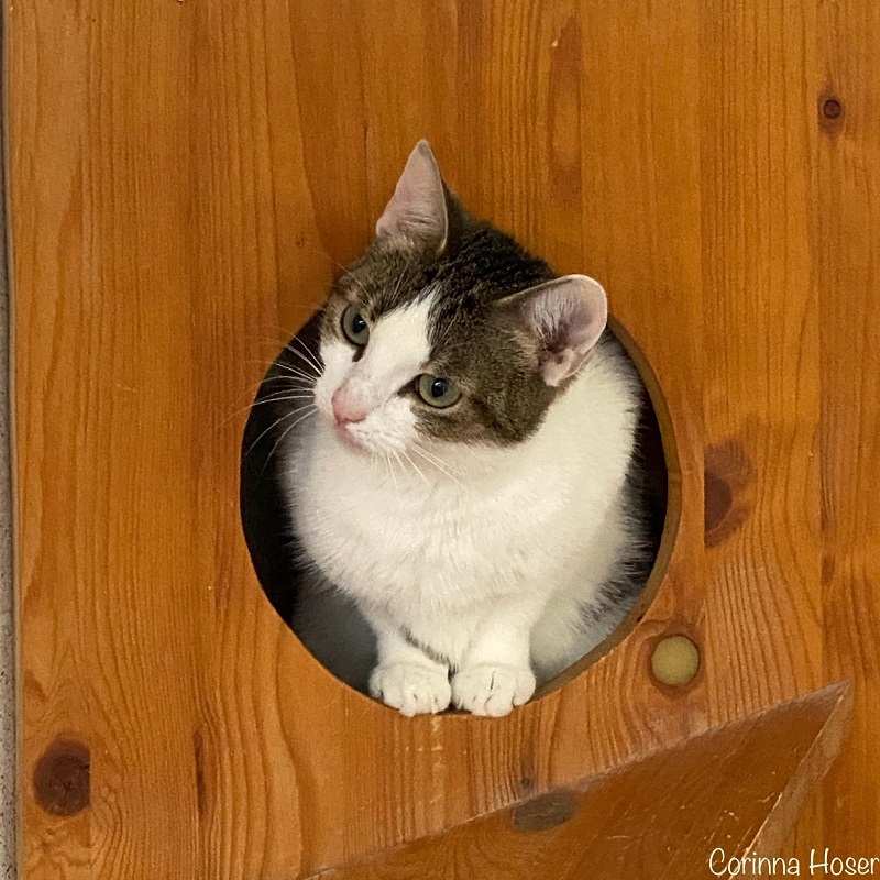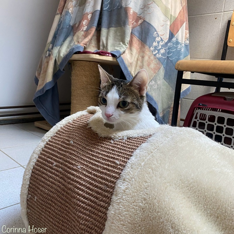 Für Videll war die anfängliche Situation sehr belastend und sie verstand die Welt nicht mehr. Mittlerweile hat sie sich eine Höhle und einen Kratzbaum mit großem Podest im Zimmer ausgesucht, die ihr Schutz bieten bzw. wo sie einen guten Blick auf alles hat. Wenn sie einem Menschen vertraut, dann schmust sie ganz doll und fängt auch mal das Knabbern an den Fingern an. Sie ist noch unsicher, was alles hinter dem Fenster und dem Katzenbalkon statt findet: Hundegebell, rauschende Blätter der Bäume usw. Da merkt man ihre Unsicherheit und das sie bisher nur die Wohnung kannte. Es kann auch mal vorkommen, dass sie bei ihr unbekannten Menschen tatzt, die sie einfach schnell streicheln wollen. Dies geschieht aber meist mit eingezogenen Krallen. Redet man ganz normal mit ihr, dann kann man sie schnell für sich gewinnen. Sie braucht eben den Vertrauensaufbau und die Zeit und dann ist alles kein Problem. Sie ist eine wirklich bezaubernde Katzendame. Ihre Statur ist sehr zierlich und man könnte meinen sie wäre noch eine Jungkatze.