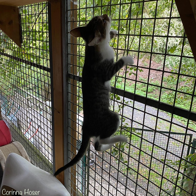 Sie ist eine super aufgeweckte, junge Katzendame die sehr gerne schmust. Man kann es sogar so beschreiben, dass sie die Menschen abgöttisch liebt und direkt deren Aufmerksamkeit sucht. Und wenn die nicht kommt, ja dann wird eben an der Hose hochgeklettert. Sie könnte in die Menschen reinkriechen so verliebt ist sie. Mit ihren Artgenossen ist sie nicht zu bremsen und spielt, tobt und kuschelt mit ihnen. Neugierig erkundet sie ihre Umgebung.