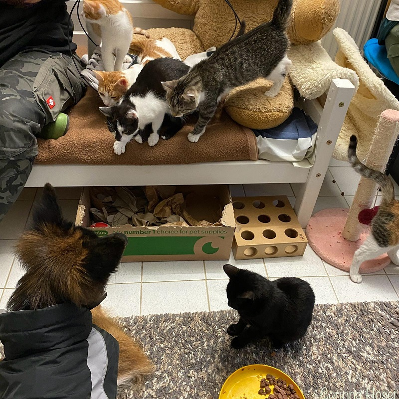 Lady Gaga wird nicht in Einzelhaltung vermittelt! Sie kann gern zu einem etwa gleichaltrigen, sehr sozialen Artgenossen ins neue Zuhause ziehen oder bringt eine Freundin / Freund aus ihrer Gruppe mit, mit der sie sich super versteht. Um den richtigen Partner aus der Gruppe zu finden, nehmen Sie sich Zeit und beobachten Sie sie gern bei uns. Mit wem spielt sie viel, kuschelt zusammen im Bettchen usw. Unsere Mitarbeiter beraten Sie nat. auch gern. Denn nur so finden wir gemeinsam auch den richtigen Partner, damit es später einmal keine Probleme gibt und sie sich weiterhin verstehen. Bei einem Hundetest in der Katzengruppe war sie super neugierig und interessiert.