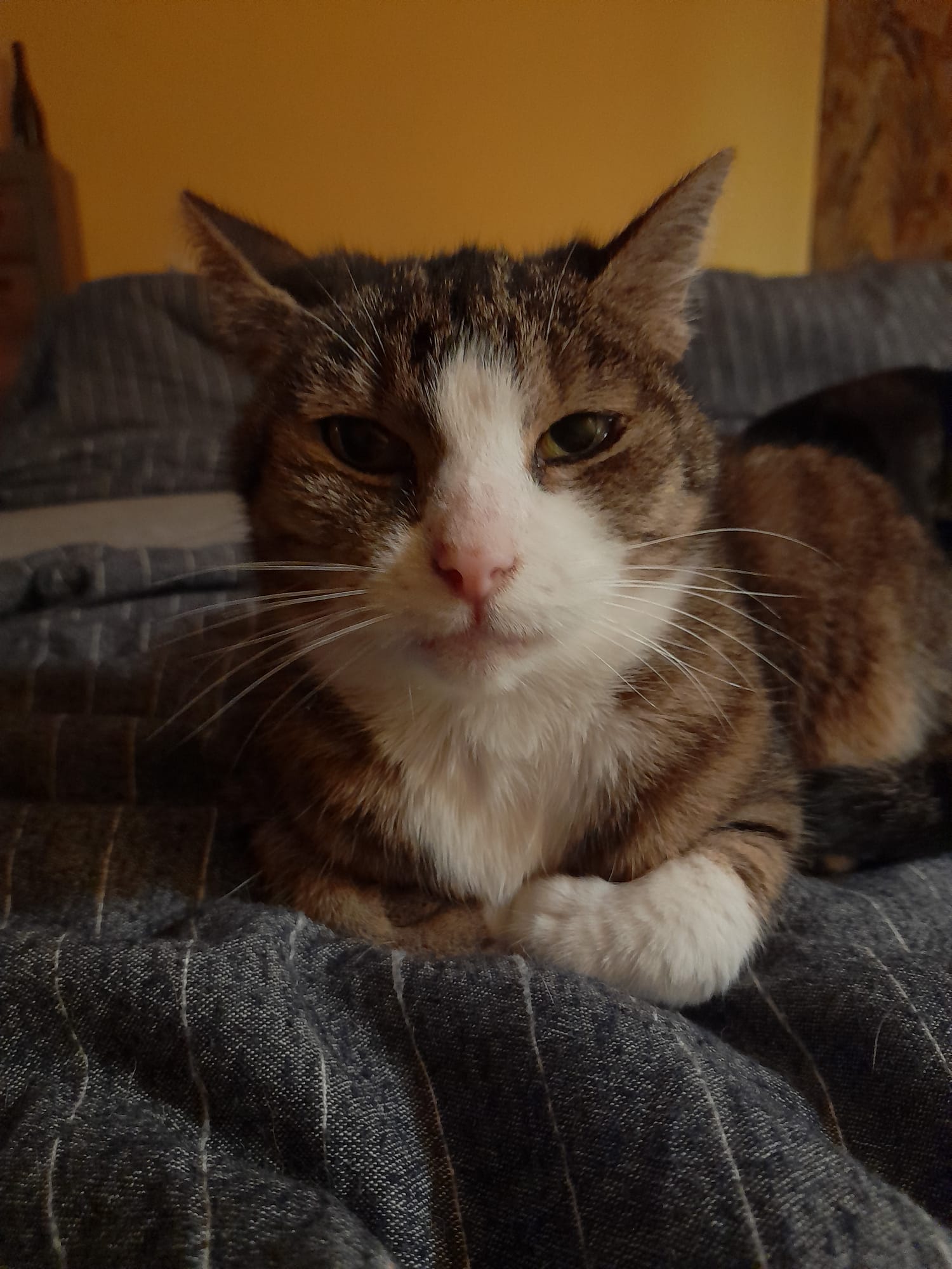 Weitere Angaben: : Katze weiblich kastriert, grau-weiß getigert, Europäisch Kurzhaar,