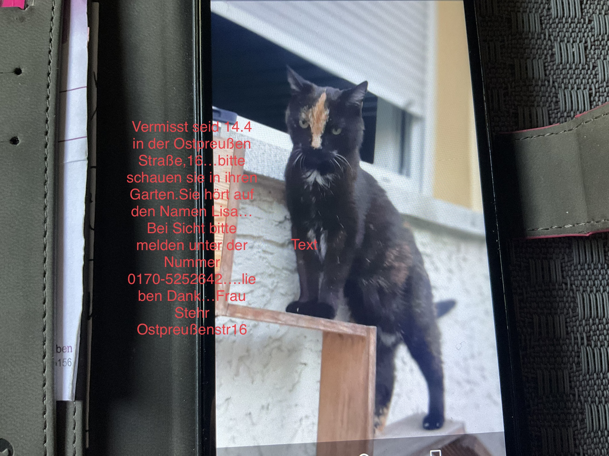 Das Tier wird vermisst seit: 14.04.23
