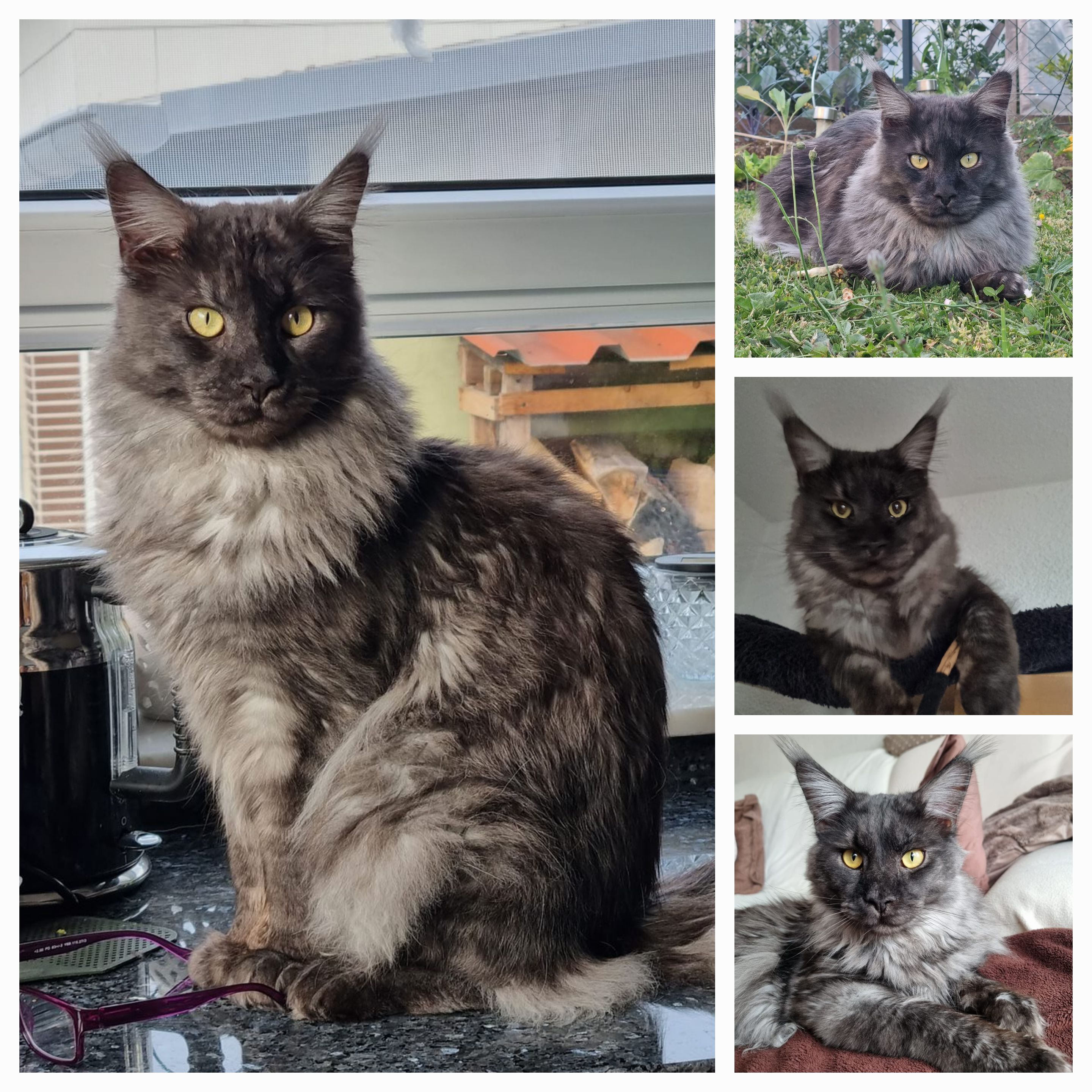 Weitere Angaben: : Main Coon Black smoke M Zeichen unterm hals