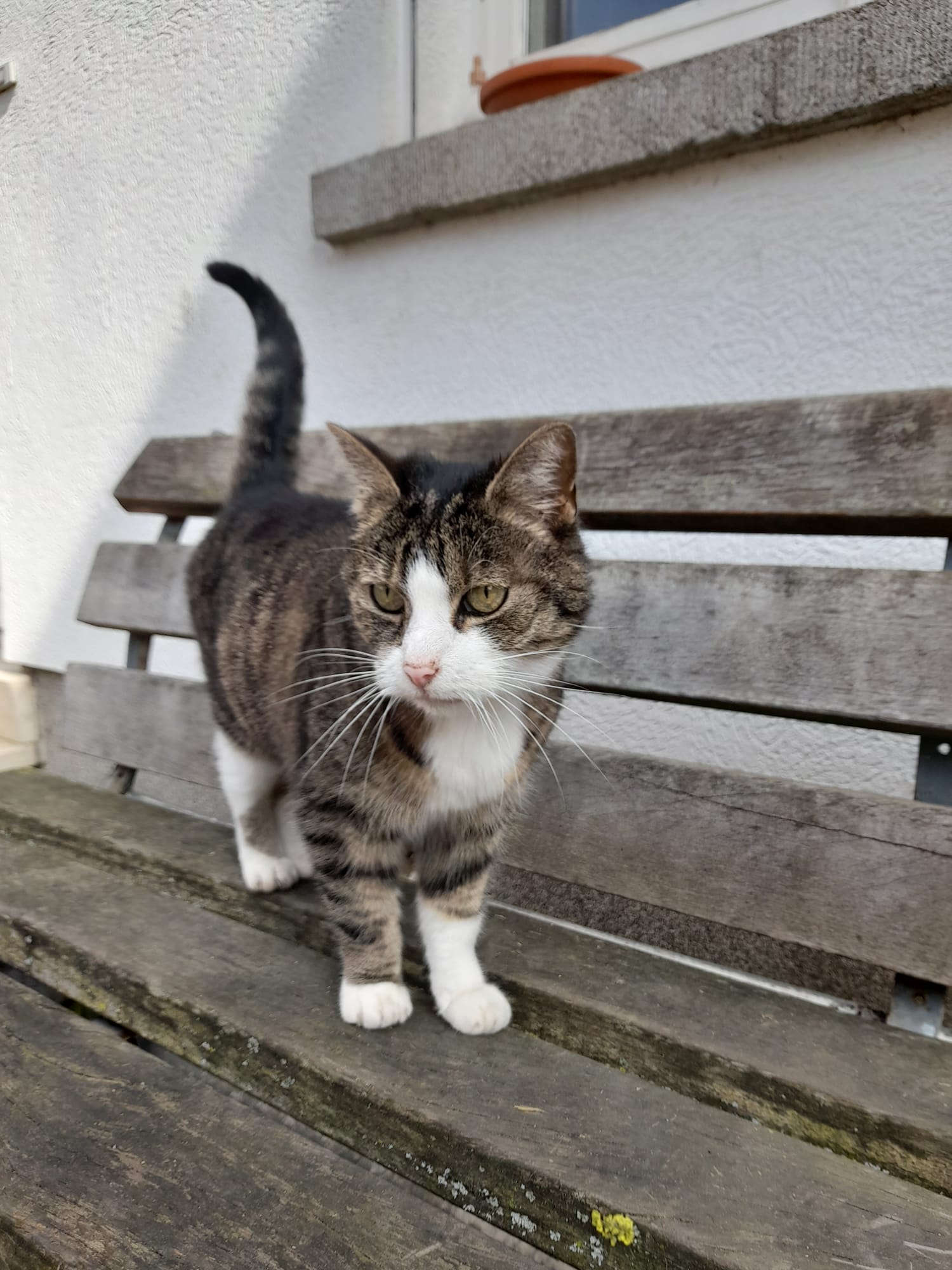 Er hat keine Angst vor anderen Katzen oder Hunde.