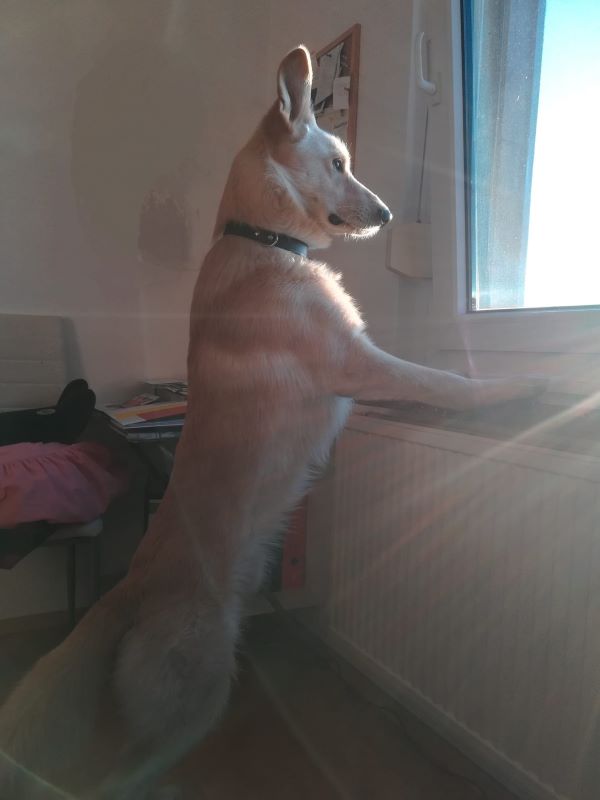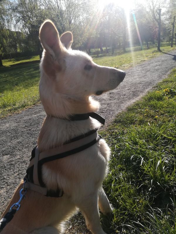 Hütehundtypisch ist er sehr schlau, lernt schnell, hat viel Energie und zwanghaftes Kontrollverhalten. Er zeigte sich direkt sehr Ressourcen verteidigend und stressanfällig.
