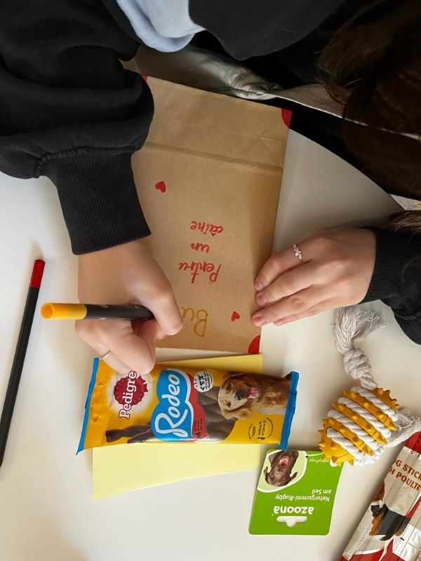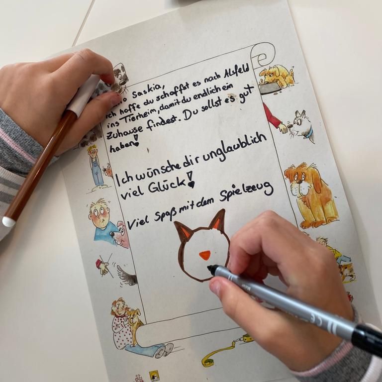 Diese Tiere haben alle eine Chance erhalten und durften zu uns ins Tierheim reisen, um somit ihr eigenes Zuhause zu finden. Die Tiere in Rumänien hoffen auf die Möglichkeit, nach Deutschland reisen zu dürfen. Um diesen Tieren symbolisch zu zeigen, dass wir auch an sie denken und ihnen von Herzen eine Chance auf eine Ausreise wünschen, packte jeder Teilnehmer ein Tütchen mit Leckereien, Spielsachen und einem eigenen Brief oder Bild. Diese Päckchen werden nächste Woche persönlich von unserer 1. Vorsitzenden, Ann-Catrin Schmidt, in Rumänien an die Fellnasen übergeben.