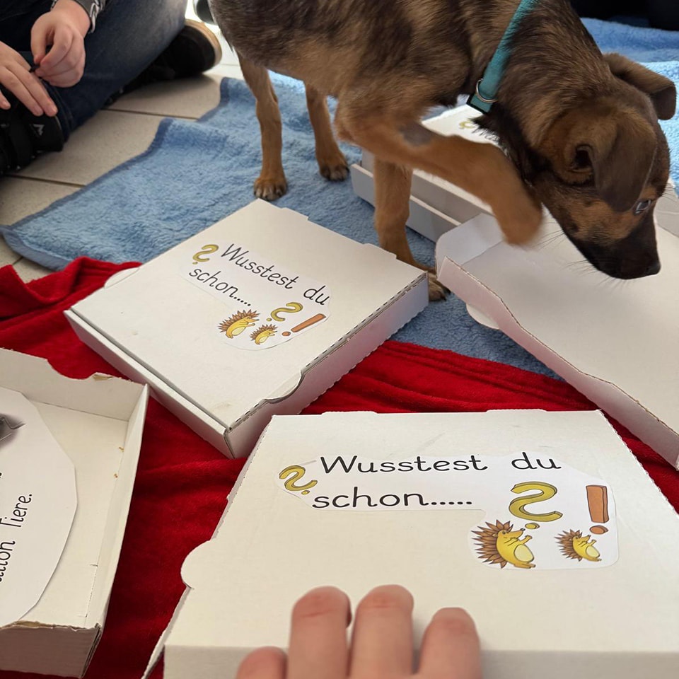 In der Kinder- und Jugendtierschutzgruppe am 16. Februar 25 informierte sich Junghund Hubert gemeinsam mit den Kindern zum Thema „Igel".